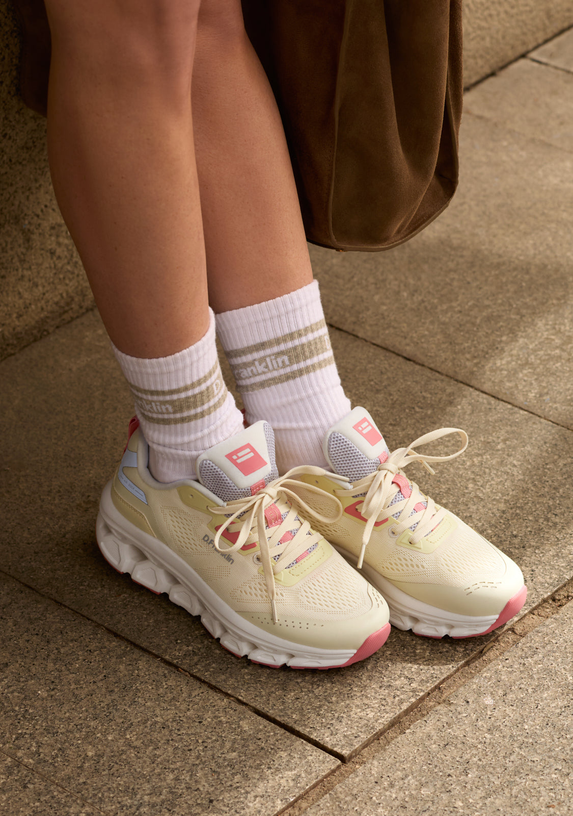 The Aero Dual Yellow / Off White by D.Franklin are designed for running and daily training, with a regular fit and lace-up closure for a secure hold. The platform sole delivers a stable lift, backed by the Biomechanical Run Comfort Validation.