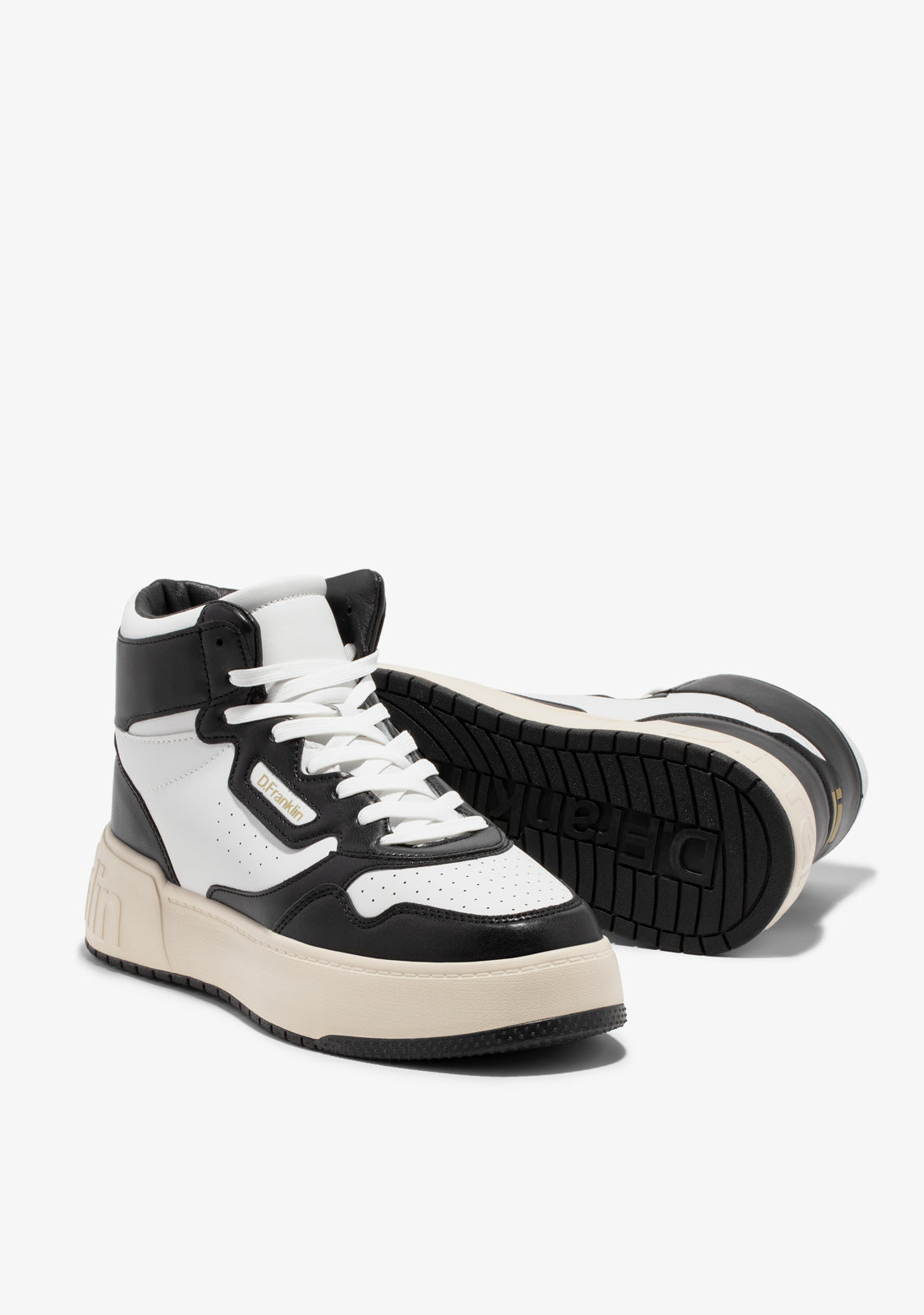 The Court D.Franklin trainers are crafted with black detailing and cotton laces. The contrasting sole features an embossed logo on both the heel and sole. They have 4cm of height and a phylon sole for lightweight cushioning.