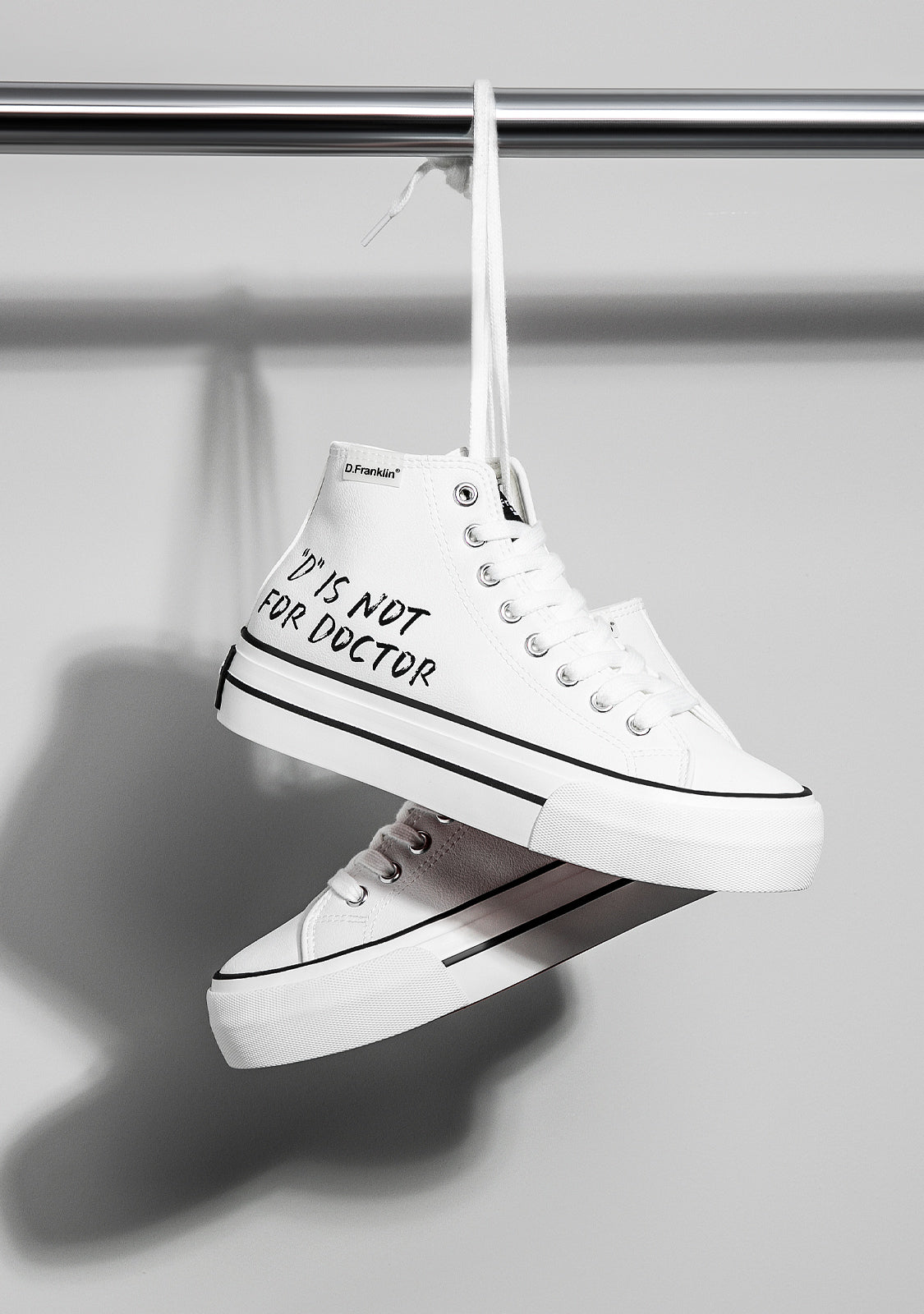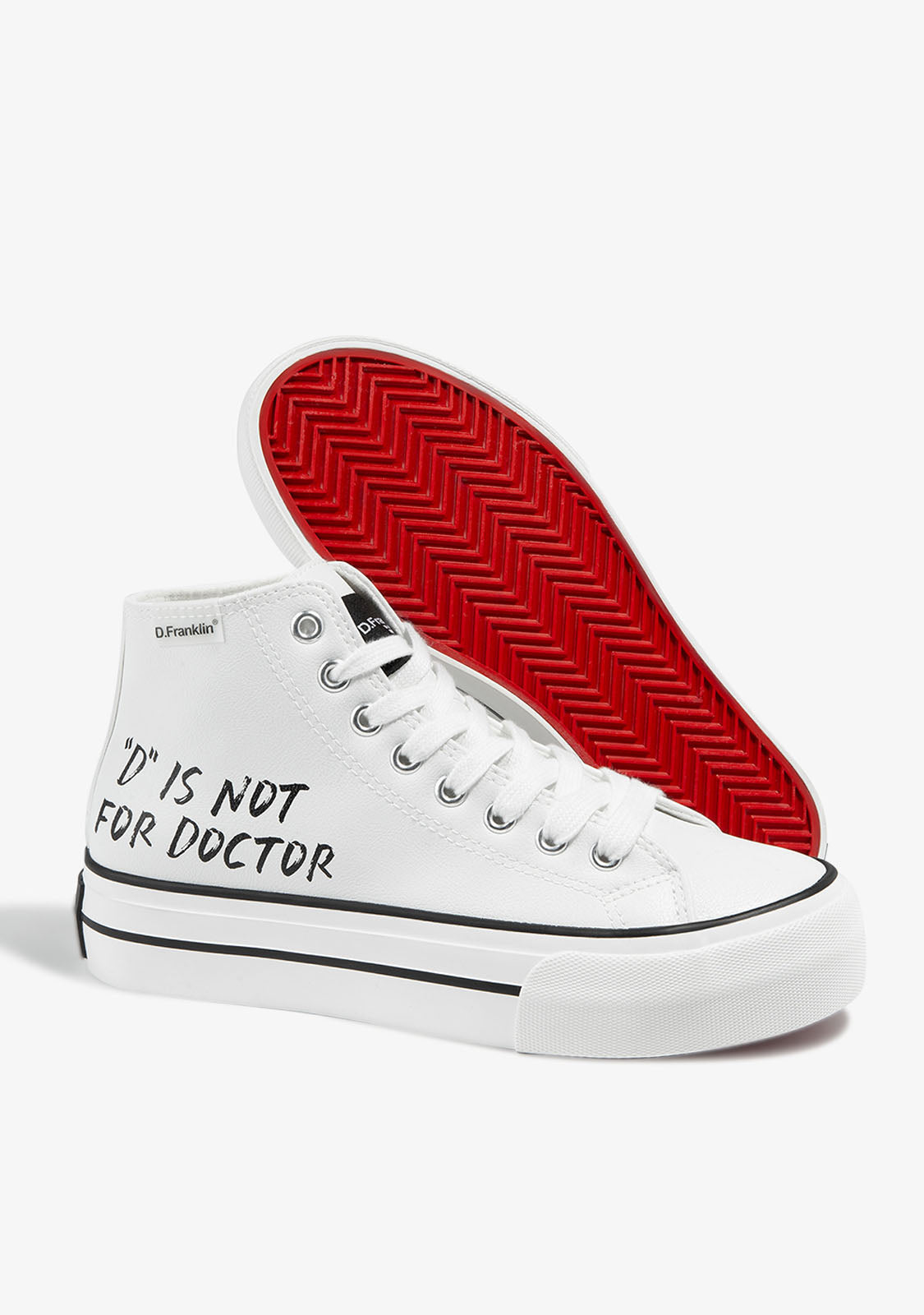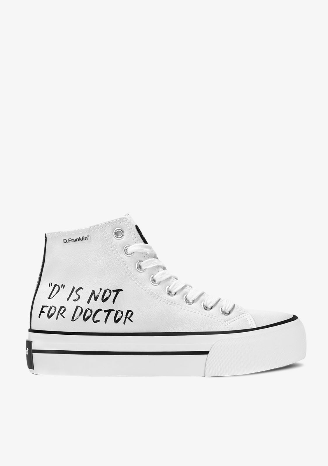 The One Way limited edition is inspired by the most casual collections, combined with the personality and the most marked style of D.Franklin®. The One Way D Is Not White are the perfect Hi-top sneakers for all kinds of new roads. A street style model that combines current trends with original details of its materials. Made of white synthetic leather, designed from our claim ‘’ D is not for Doctor ’’.