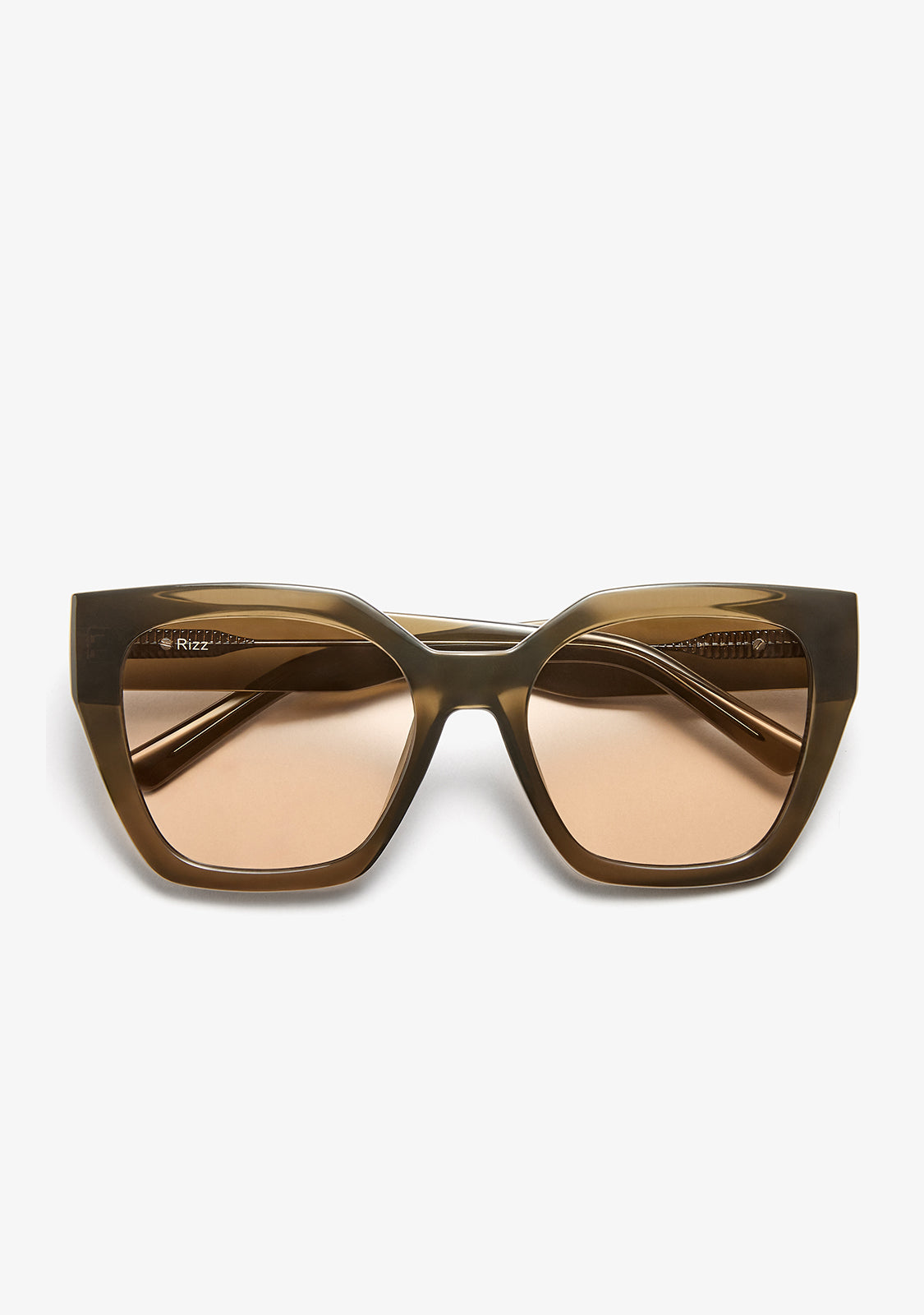 Square sunglasses with a defined front and clean edges, designed to create a balanced, contemporary silhouette. The new Rizz Dark Green / Green combines a sharp square shape with dark green tones and matching green lenses, delivering a timeless style with everyday versatility.