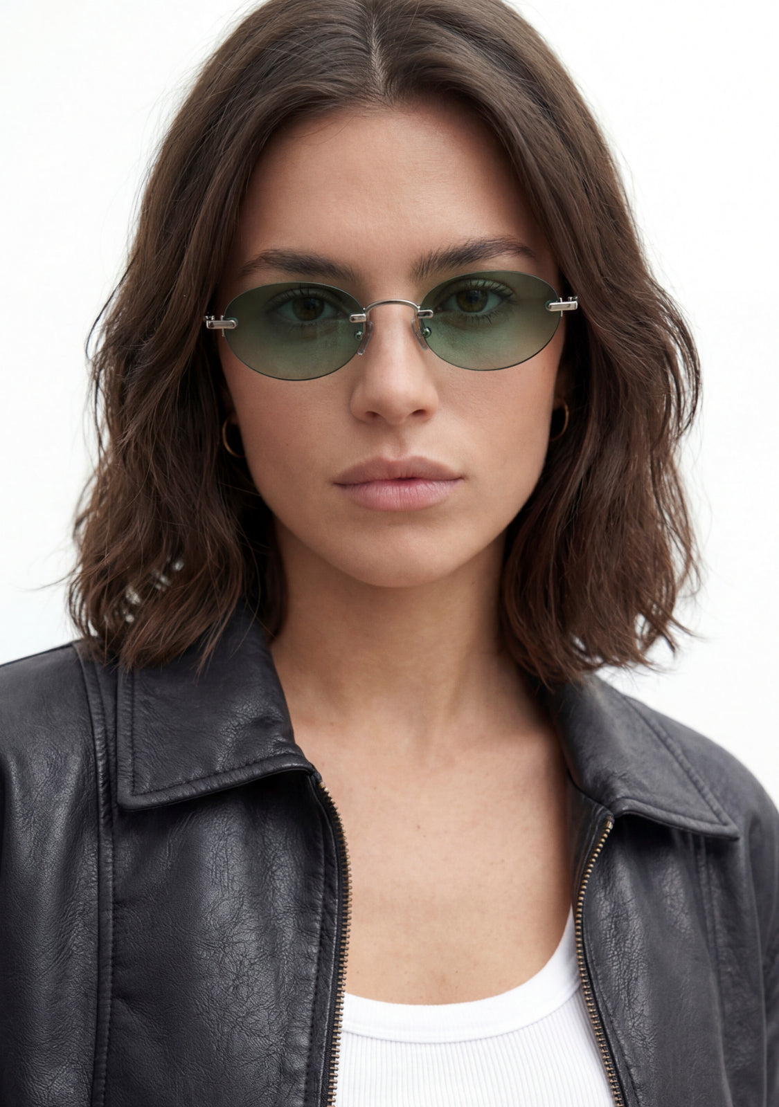 The Smith Oval by D.Franklin reinterprets the oval silhouette with a contemporary twist. Its shiny silver metal frame adds lightness and luminosity, while the green gradient lenses add an original touch that turns any look into a true style statement.