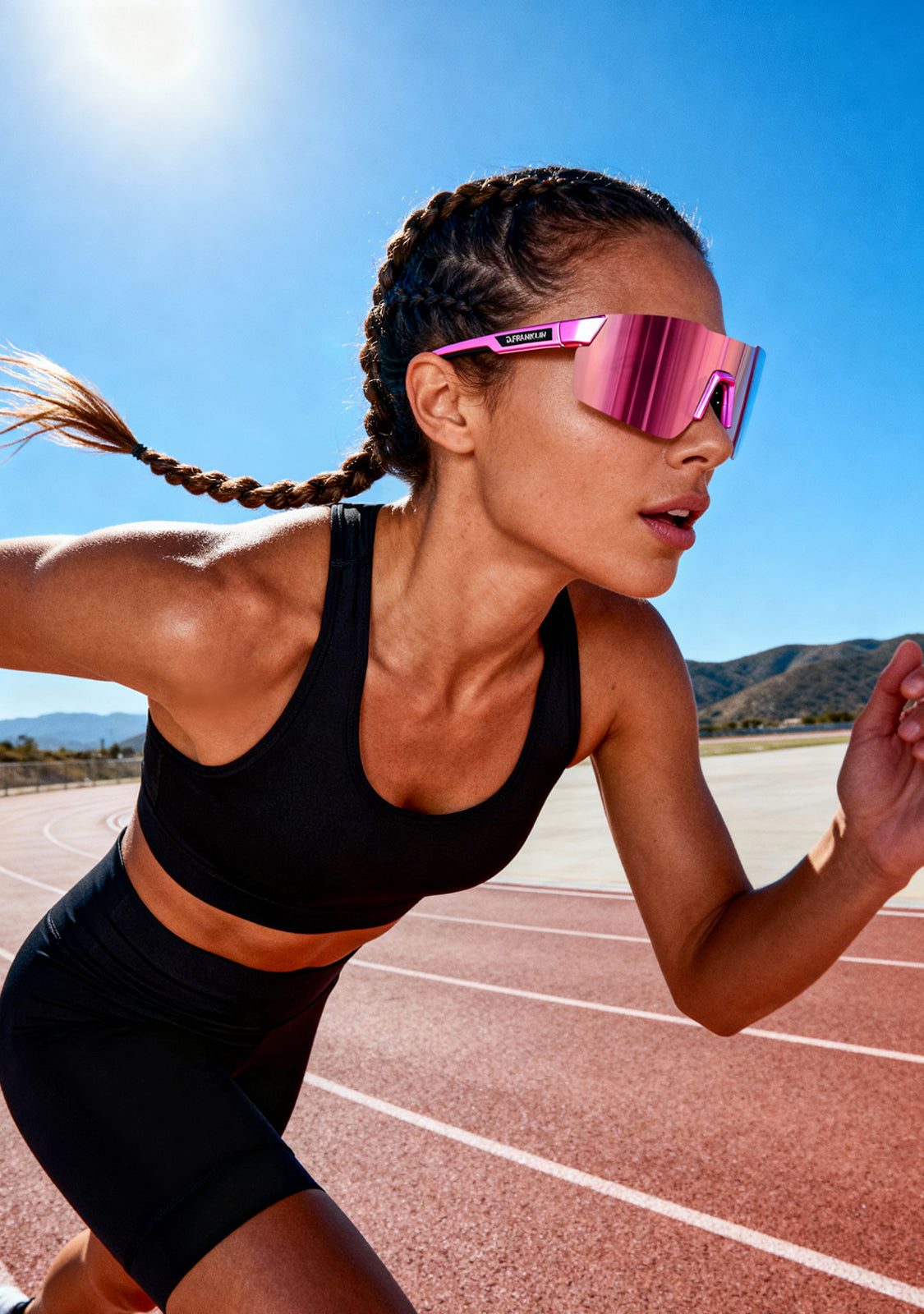 Mirrored sunglasses with high-tech aesthetics. Immerse yourself in a curved design inspired by the speed of the waves. Aerodynamic sunglasses created to break up your style.