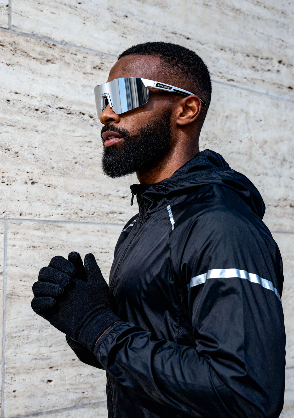 Mirrored sunglasses with high-tech aesthetics. Immerse yourself in a curved design inspired by the speed of the waves. Aerodynamic sunglasses created to break up your style.