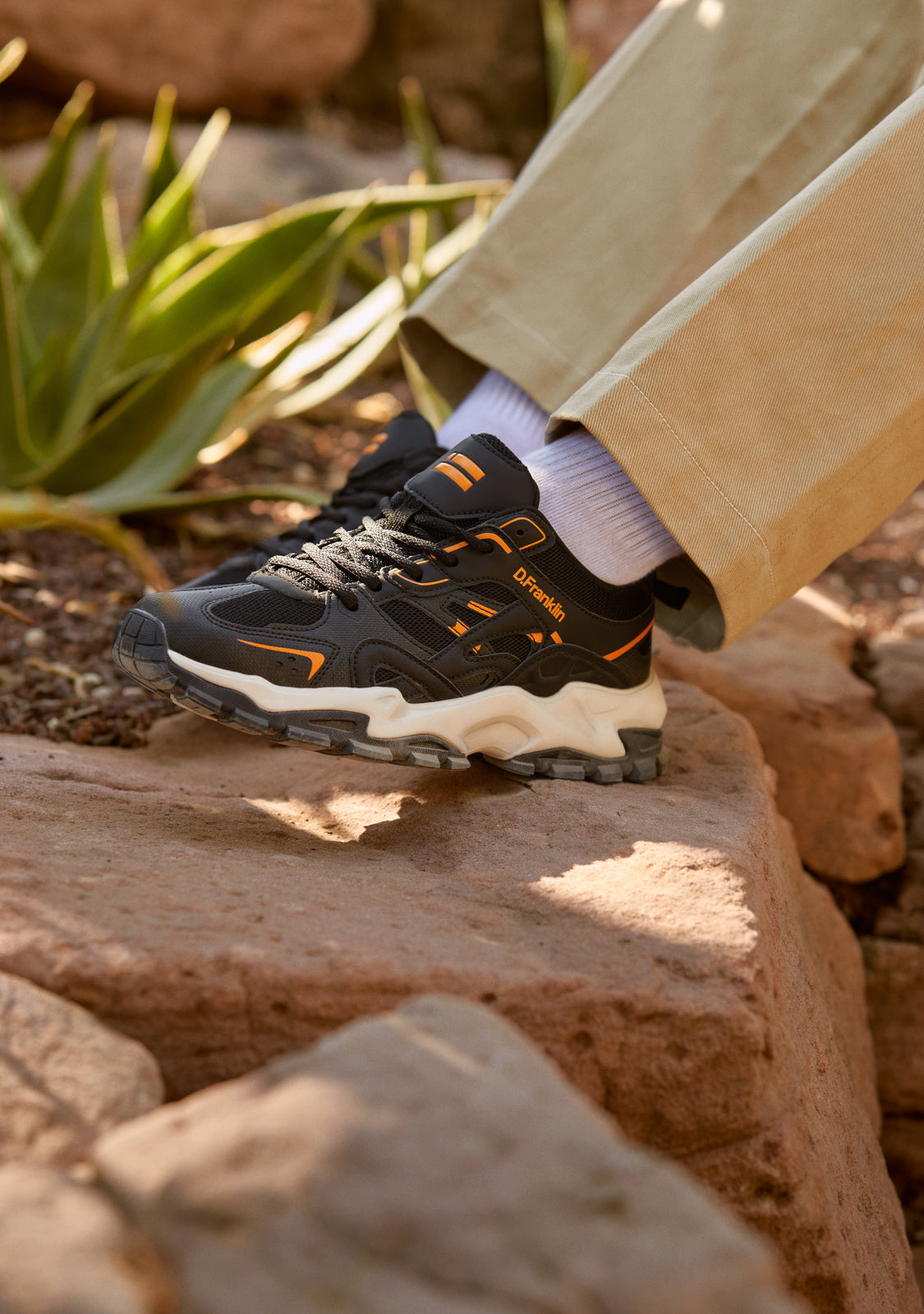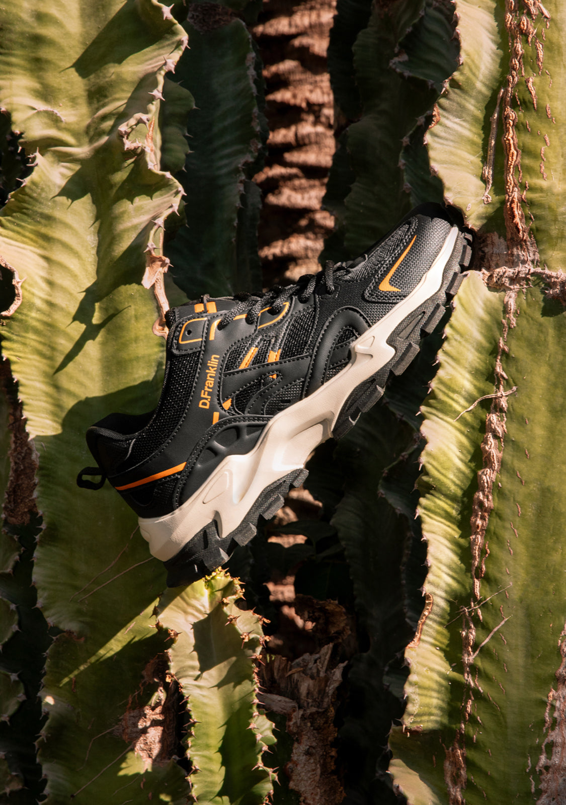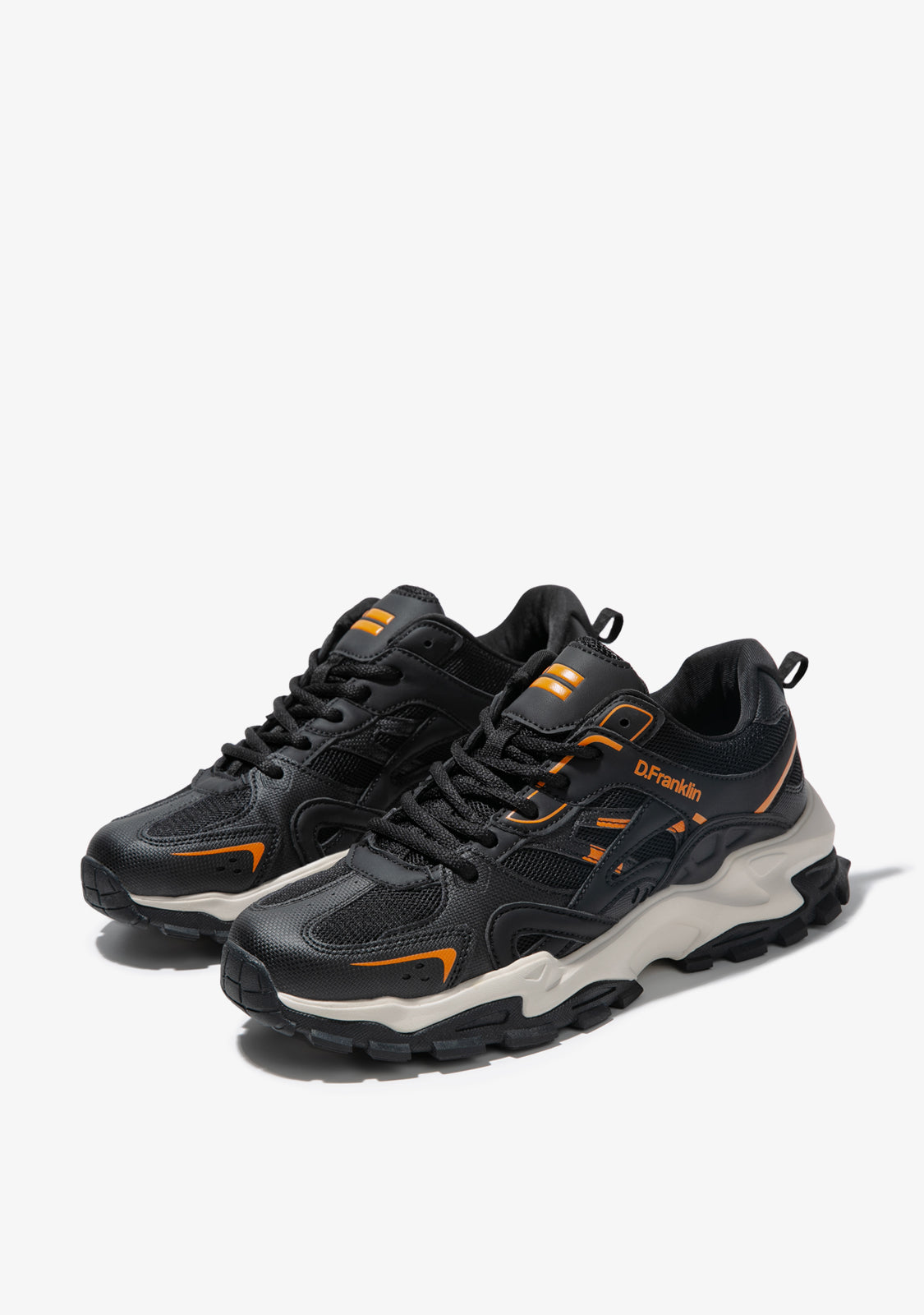 Sneakers de estilo track D.Franklin. Canalizamos la nostalgia de los años noventa en un diseño actualizado. Texturas, colores y detalles muy afinados se fusionan para crear una estética de contrastes.