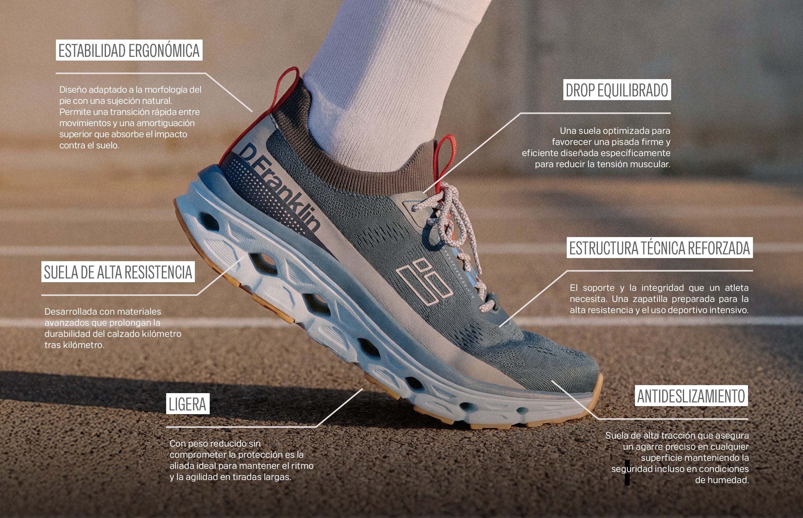 La suela con tecnología Aero y espuma de doble densidad ofrece una amortiguación perfecta, mientras que la mezcla con TPU añade soporte y durabilidad cuando aumentas el ritmo.