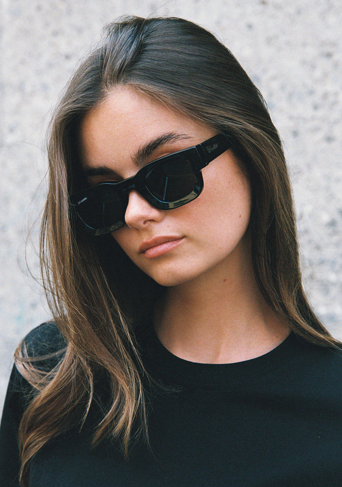 Bermuda Black Smoke es un diseño de acabado brillante elaborado en materiales inspirados en el titanio. Montura gruesa y lentes ahumadas que representan nuestro prisma diferente enmarcadas en una silueta rectangular de grandes dimensiones especialmente diseñada para interactuar con nuevos espacios.