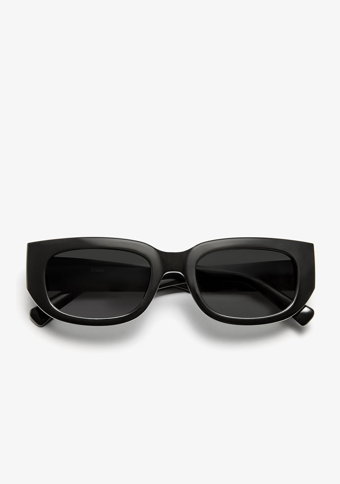 Las gafas de sol Blaze Black / Black destacan por su silueta rectangular y su acabado totalmente negro. Inspiradas en líneas retro, aportan un toque moderno a cualquier look diario.