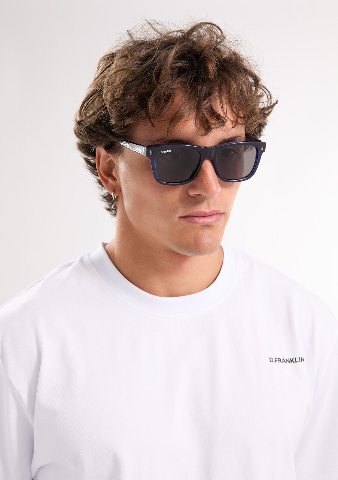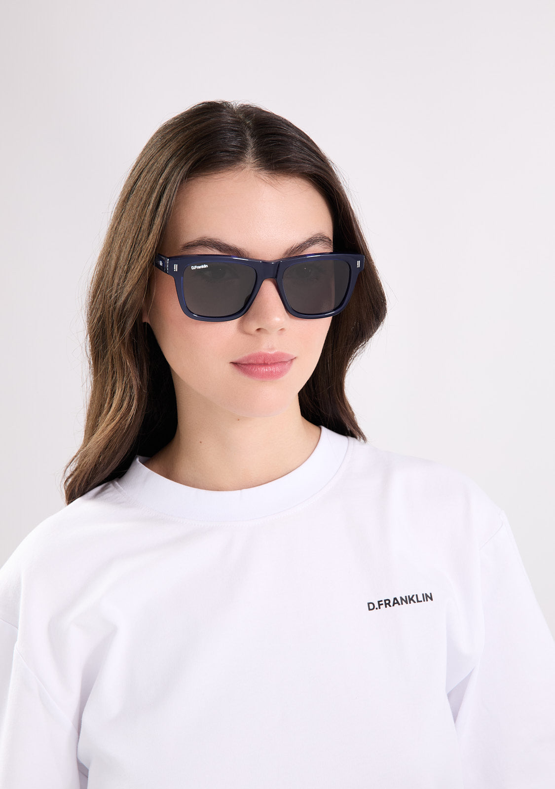 Las Boyd Navy / Smoke de D.Franklin son el equilibrio perfecto entre diseño moderno y funcionalidad. Estas gafas de sol, con un frontal y puente fabricados en TR90, destacan por ser ultraligeras y resistentes, mientras que las varillas de acetato garantizan una mayor durabilidad y comodidad para el uso diario.