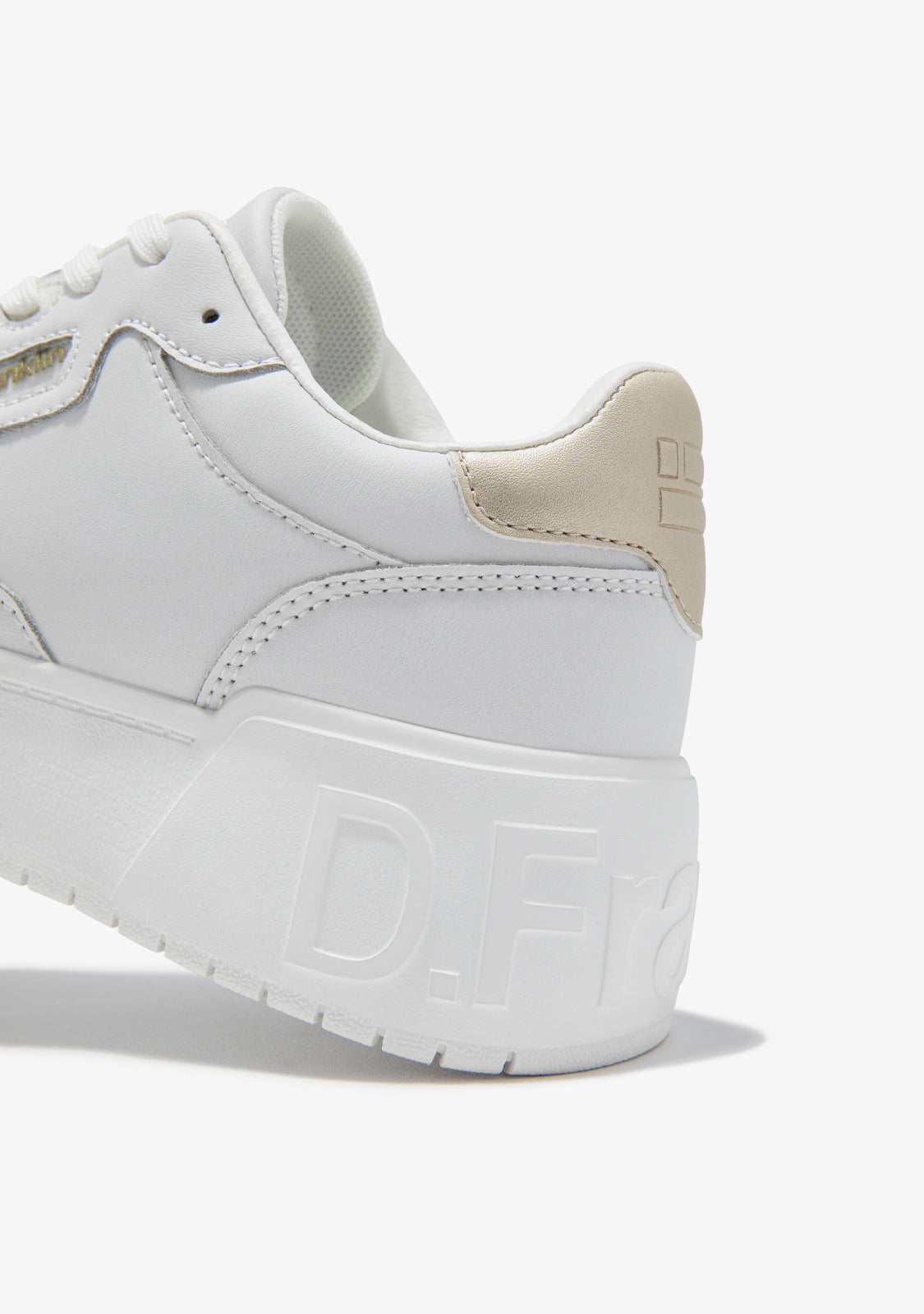 Zapatillas minimal con inspiración deportiva. El diseño referente de nuestra iconografía traspasa la cancha y llega hasta las calles. Conecta tu estética D.Franklin con un emblema de corte retro y detalles sencillos.