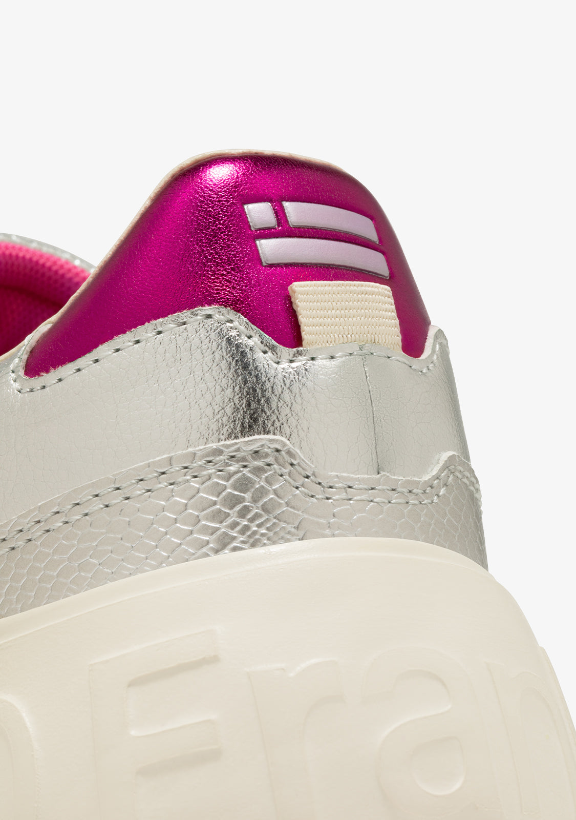 Brilla con estilo en cada paso con las zapatillas Court Basic Snake Silver de D.Franklin, diseñadas para quienes buscan marcar la diferencia. Este modelo destaca por su acabado en color plateado, añadiendo un toque llamativo y sofisticado a tus looks.