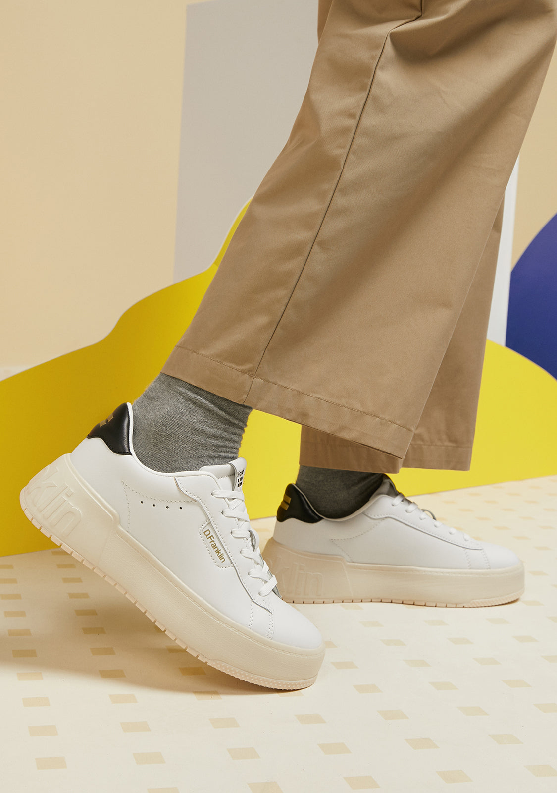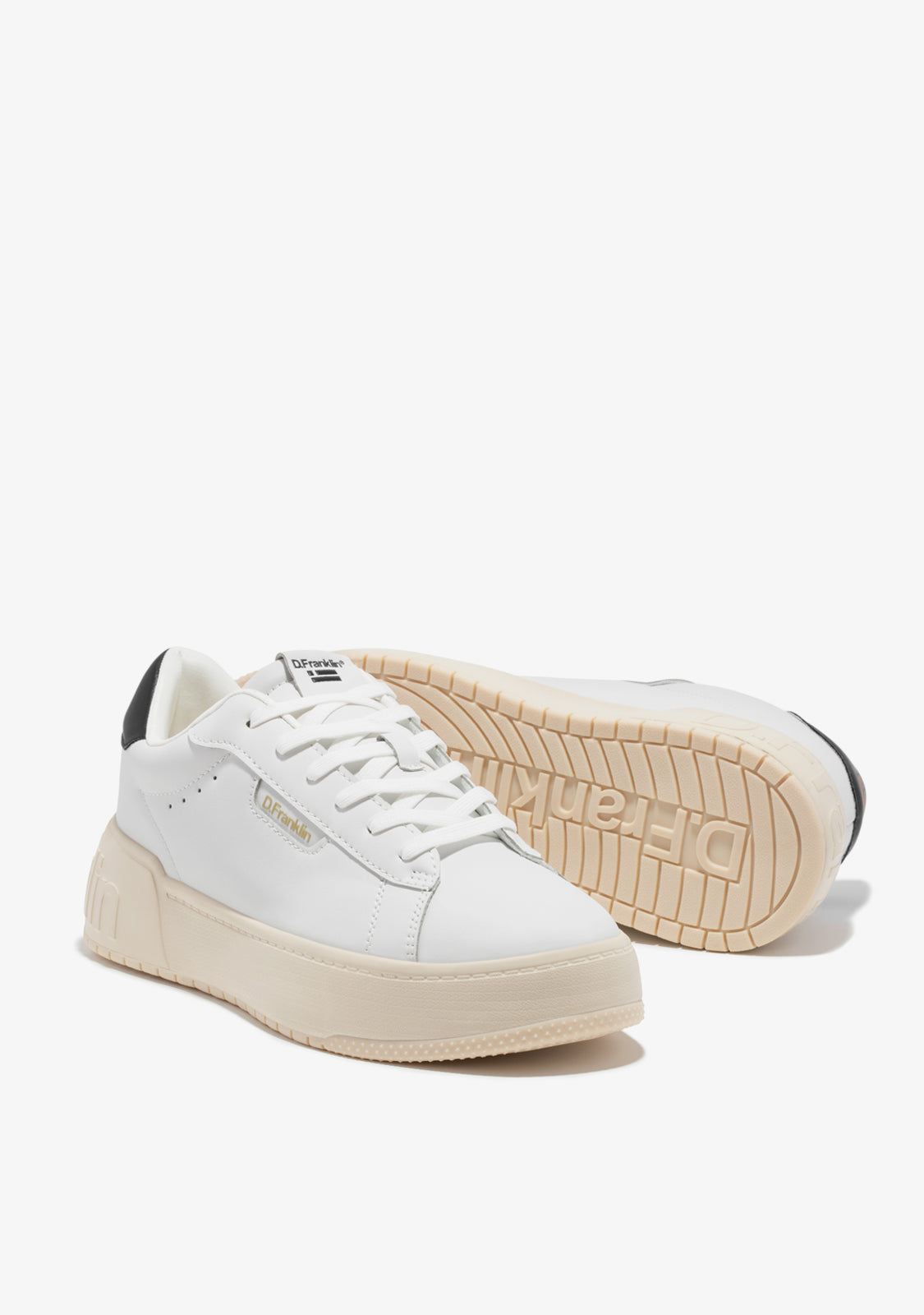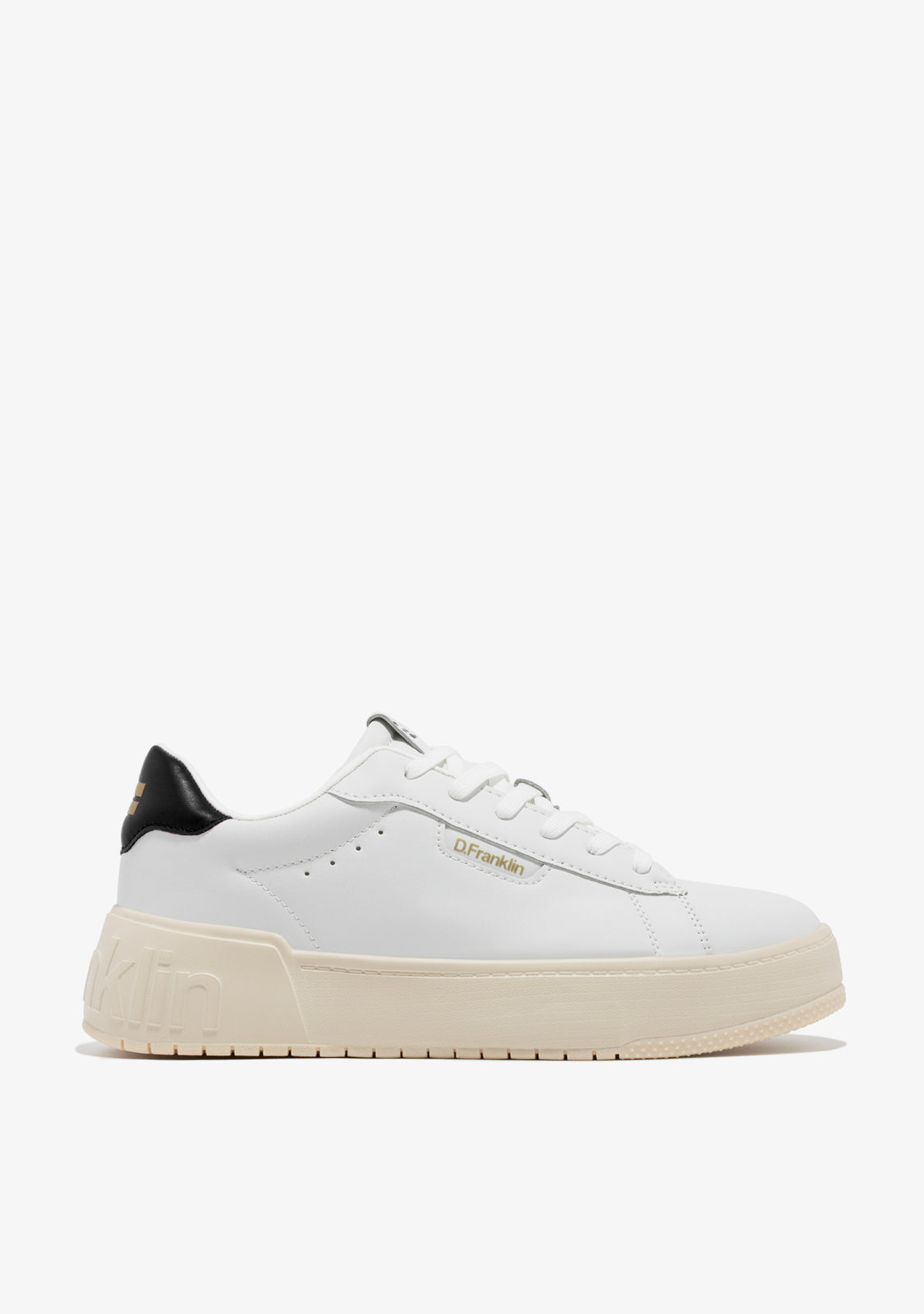 Zapatillas minimal con inspiración deportiva. El diseño referente de nuestra iconografía traspasa la cancha y llega hasta las calles. Conecta tu estética D.Franklin con un emblema de corte retro y detalles sencillos.