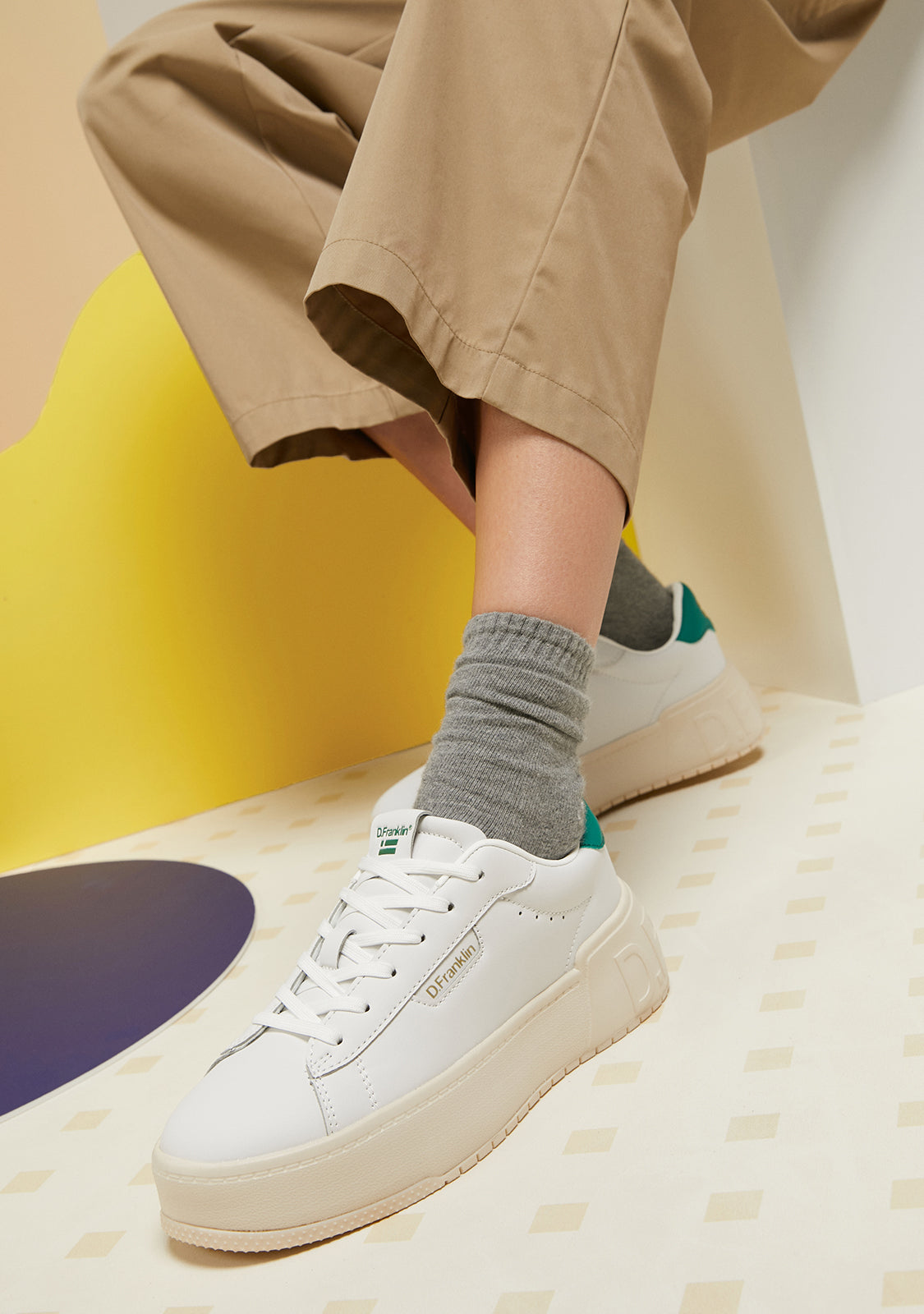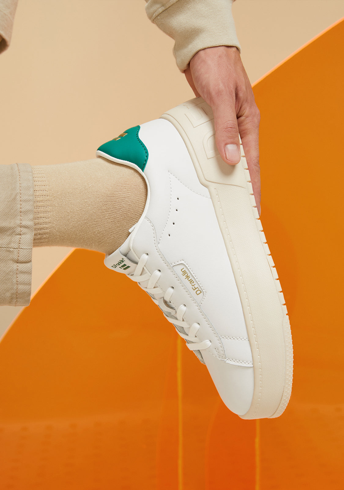 Zapatillas minimal con inspiración deportiva. El diseño referente de nuestra iconografía traspasa la cancha y llega hasta las calles. Conecta tu estética D.Franklin con un emblema de corte retro y detalles sencillos.