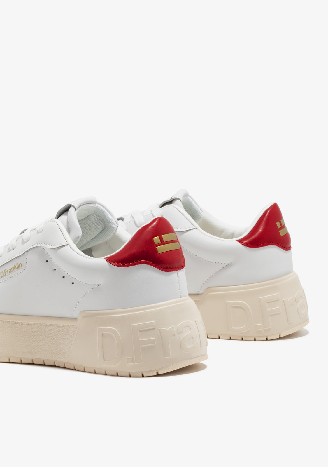 Zapatillas minimal con inspiración deportiva. El diseño referente de nuestra iconografía traspasa la cancha y llega hasta las calles. Conecta tu estética D.Franklin con un emblema de corte retro y detalles sencillos.