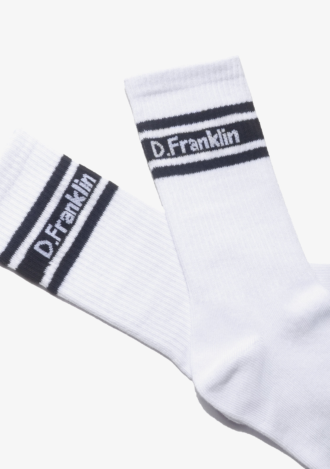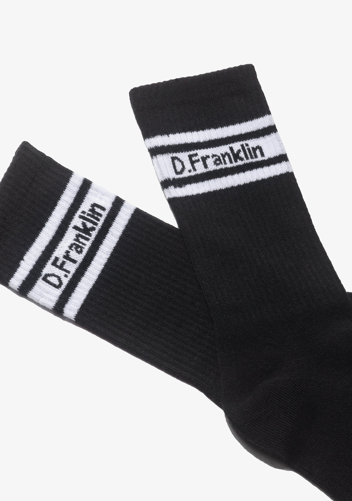El logotipo de D.Franklin está tejido en la parte superior y en la suela, añadiendo un detalle de estilo distintivo. Perfectos para combinar con zapatillas o calzado casual, estos calcetines son una gran adición a tu colección de accesorios de moda.