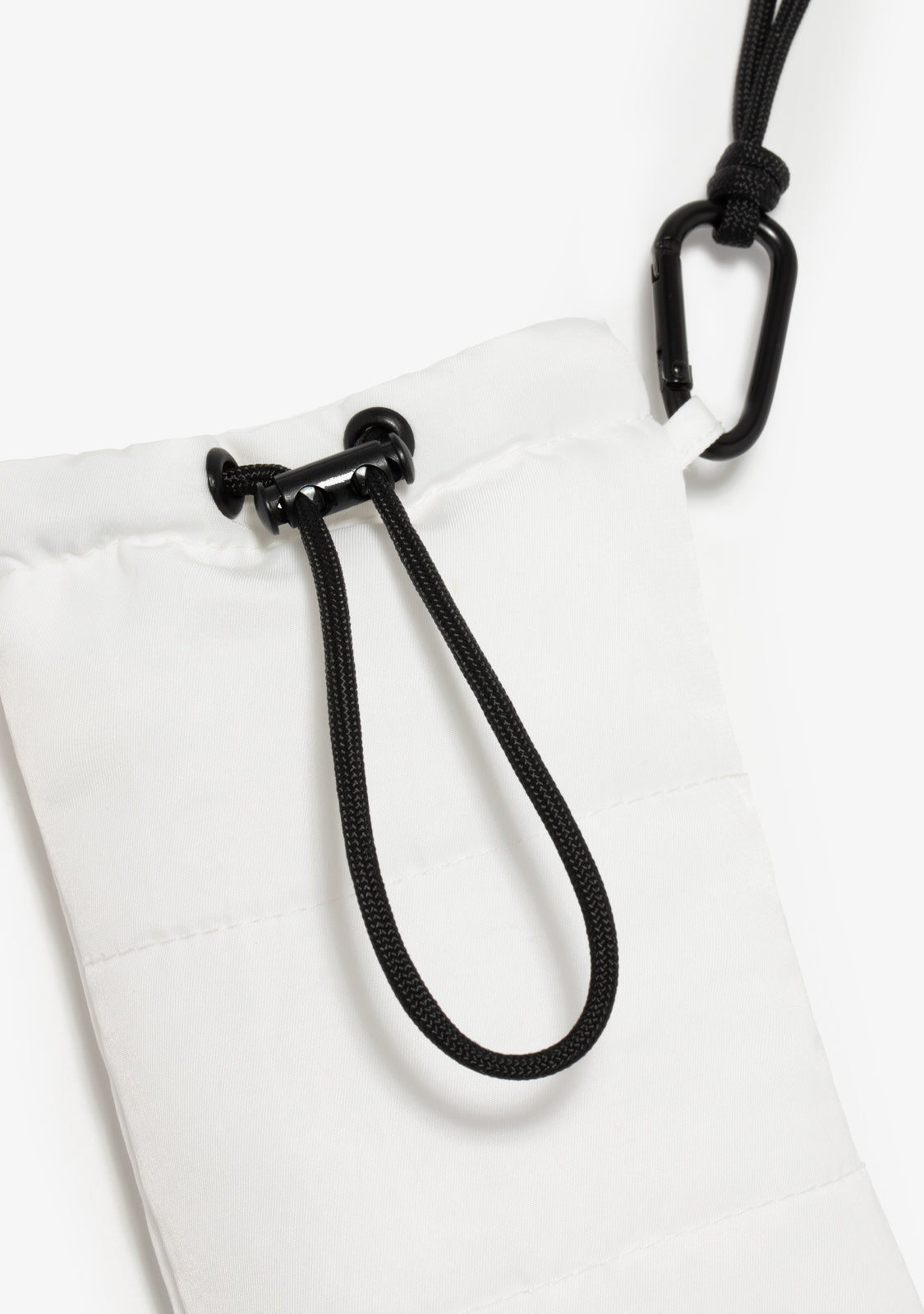 Este modelo con acabado blanco tiene un cordón negro extraíble gracias a sus mosquetones que permiten adaptar su longitud. Cuenta con cierre ajustable y logo D.Franklin serigrafiado en color negro en la parte delantera.