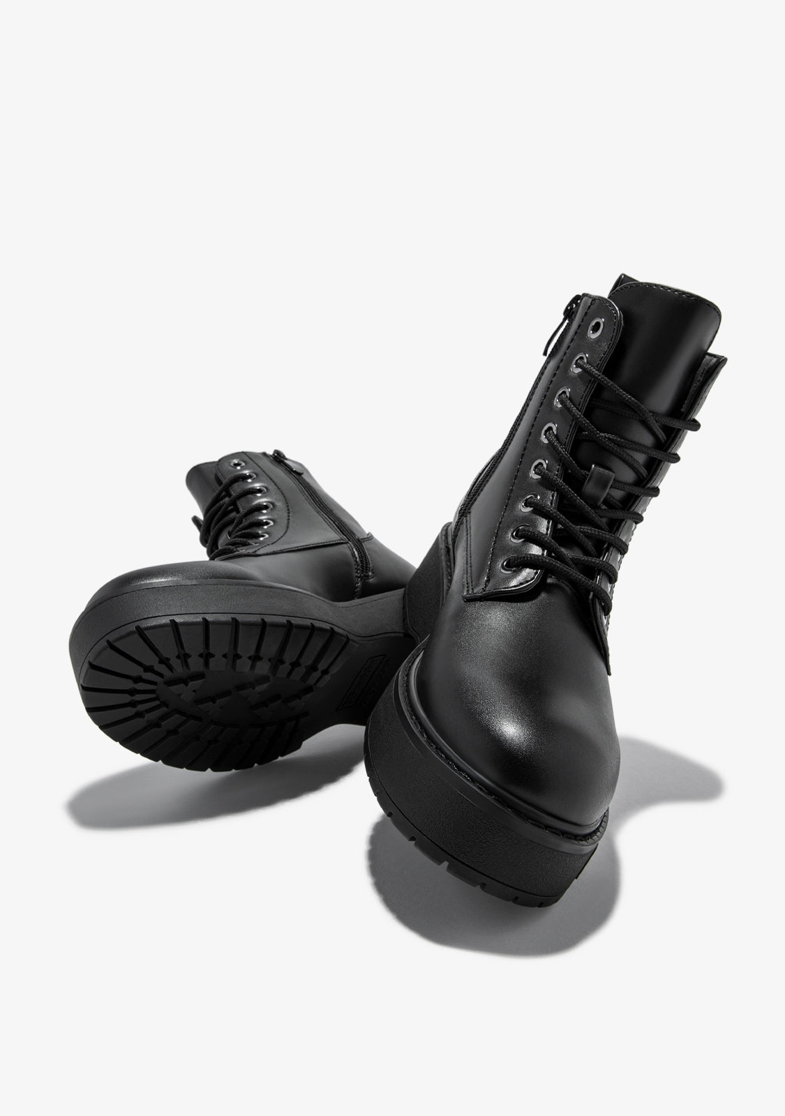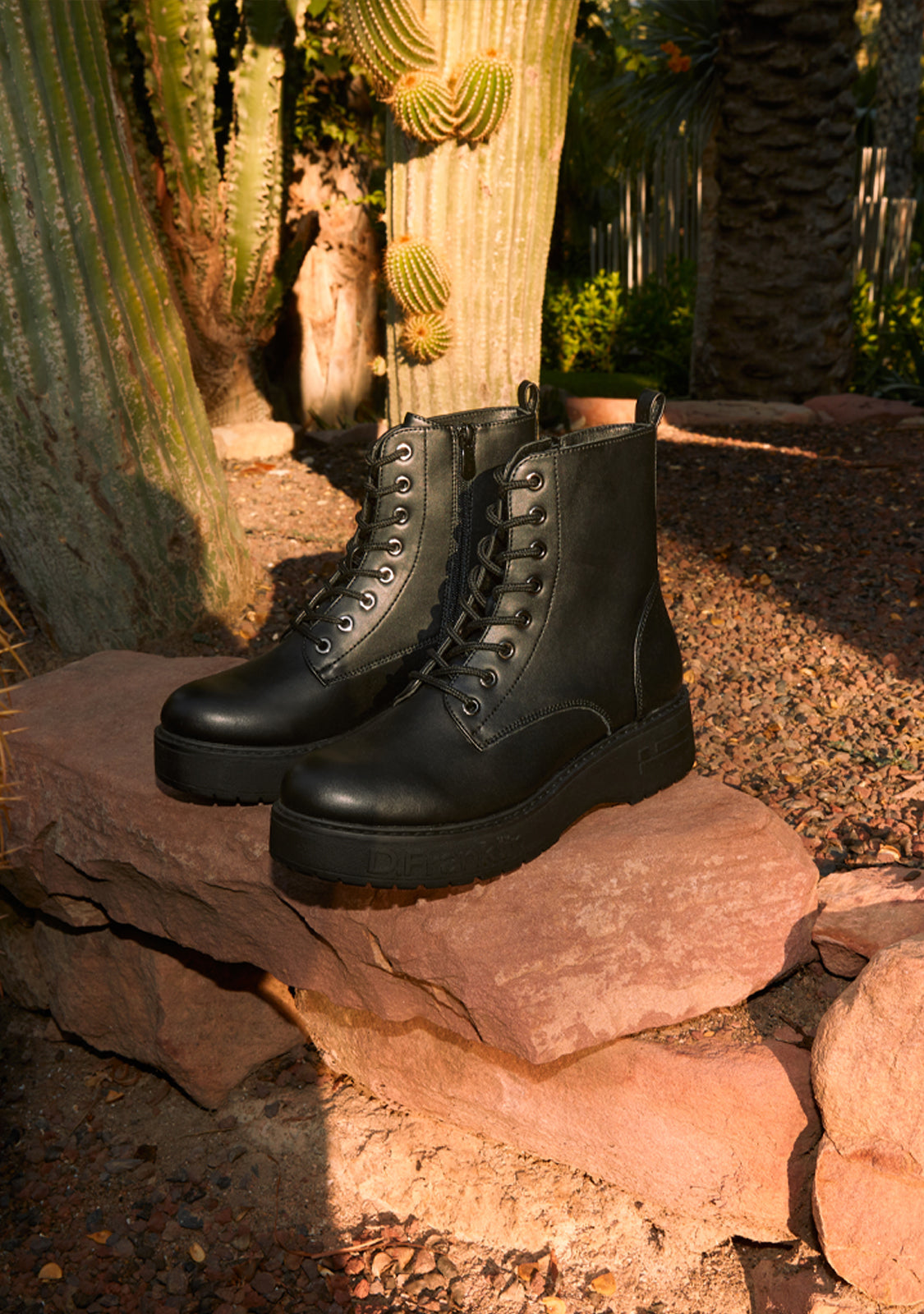 Botas militares de corte bajo para condecorar tu estilo. Un diseño que destaca por su simplicidad y acabado impecable. Creadas estratégicamente para desfilar con paso firme y autenticidad.