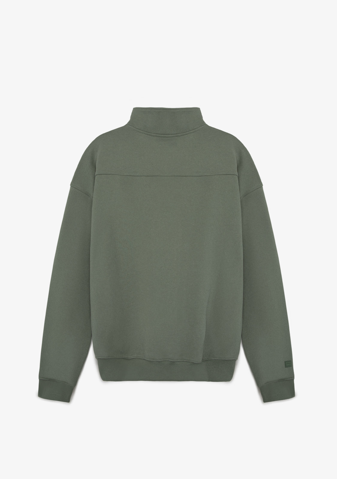 Half-Zip Sweatshirt Sage Green es una sudadera unisex que combina comodidad con una estructura moderna. El cuello con cremallera aporta un ajuste personalizado, mientras que las costuras marcadas rompen con la monotonía para crear un look más dinámico.