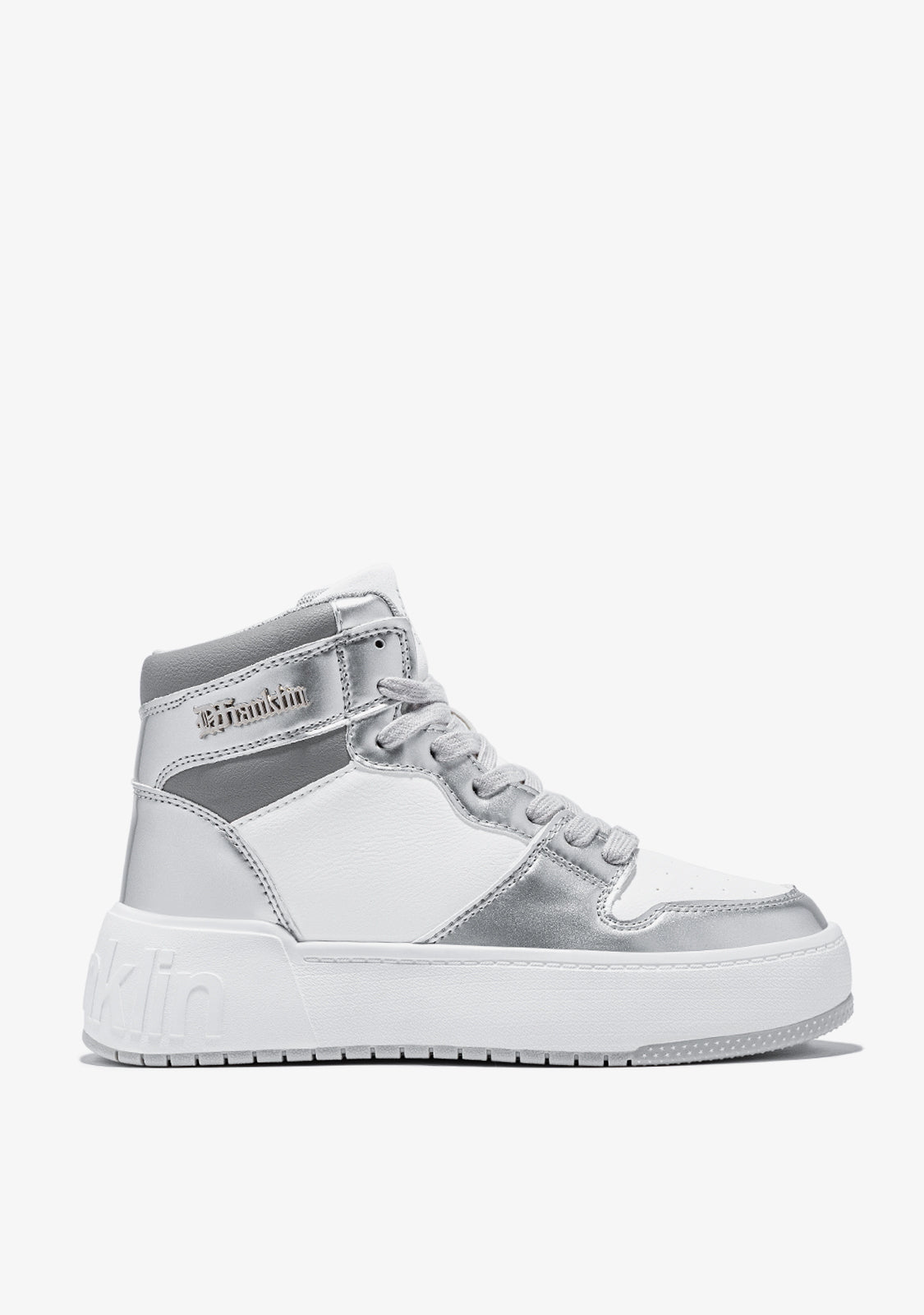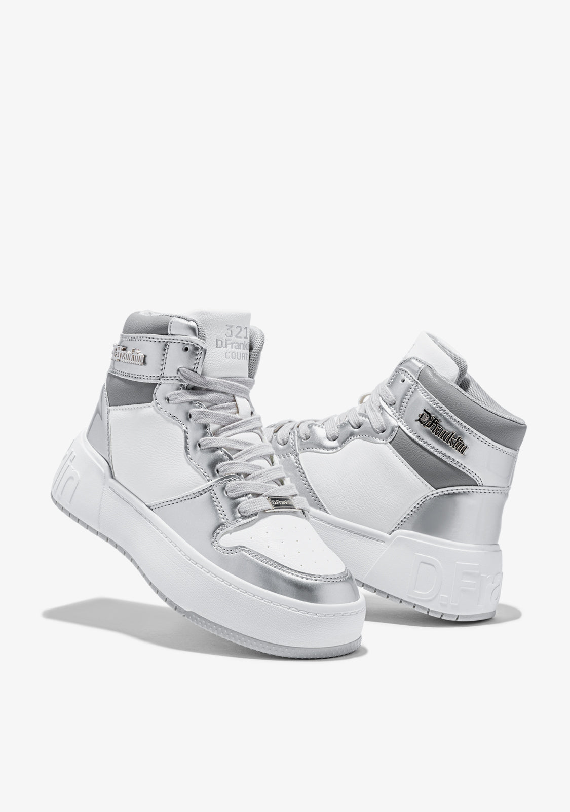 Presentamos la nueva colección Court de D.Franklin. Un nuevo modelo de inspiración deportiva, creado desde la cancha para ofrecer un diseño atrevido y versátil. El modelo High Court White / Silver se caracteriza por su estilo abotinado, con un acabado plata y blanco.