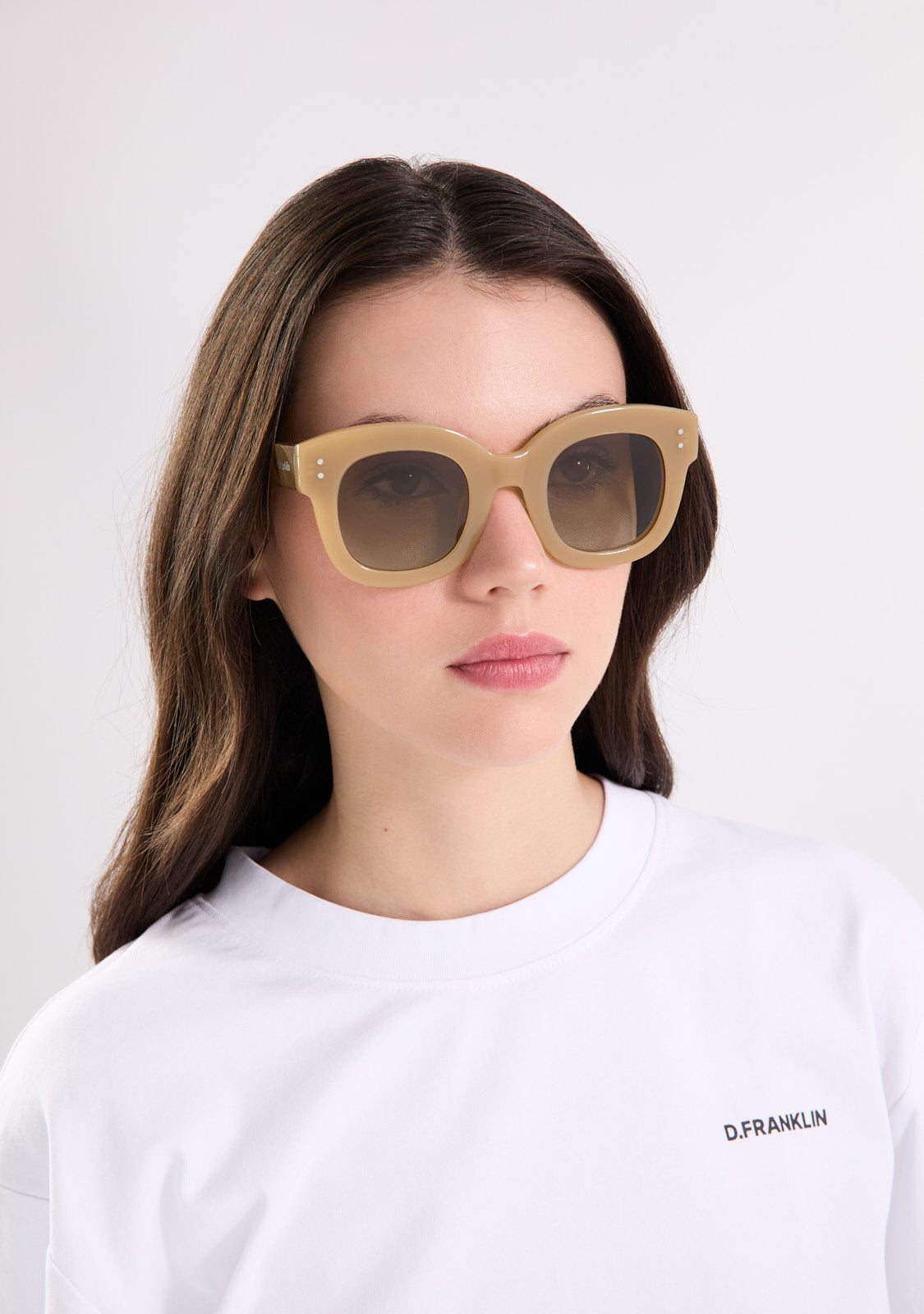 Las Holly Sand / Gradient Amber de D.Franklin destacan por su diseño sofisticado y funcionalidad avanzada. Con un frontal, puente y varillas fabricados en acetato, estas gafas ofrecen durabilidad y una sensación premium, asegurando confort durante todo el día.