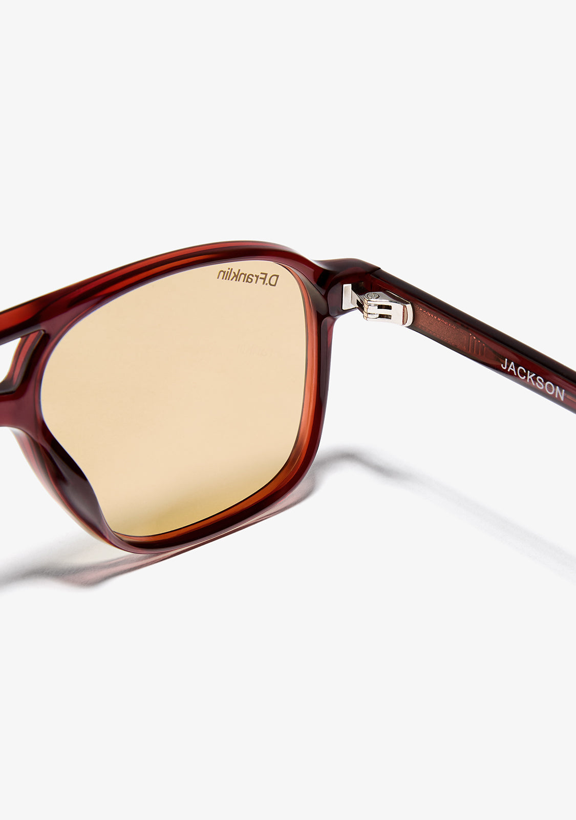 Gafas de sol con una montura extra ligera y un diseño estilizado que evoca los modelos más icónicos de los años 80. Las nuevas Jackson Square Brown / Amber ofrecen un diseño que se destaca por su doble puente, la solidez de su diseño y la calidad de sus materiales.