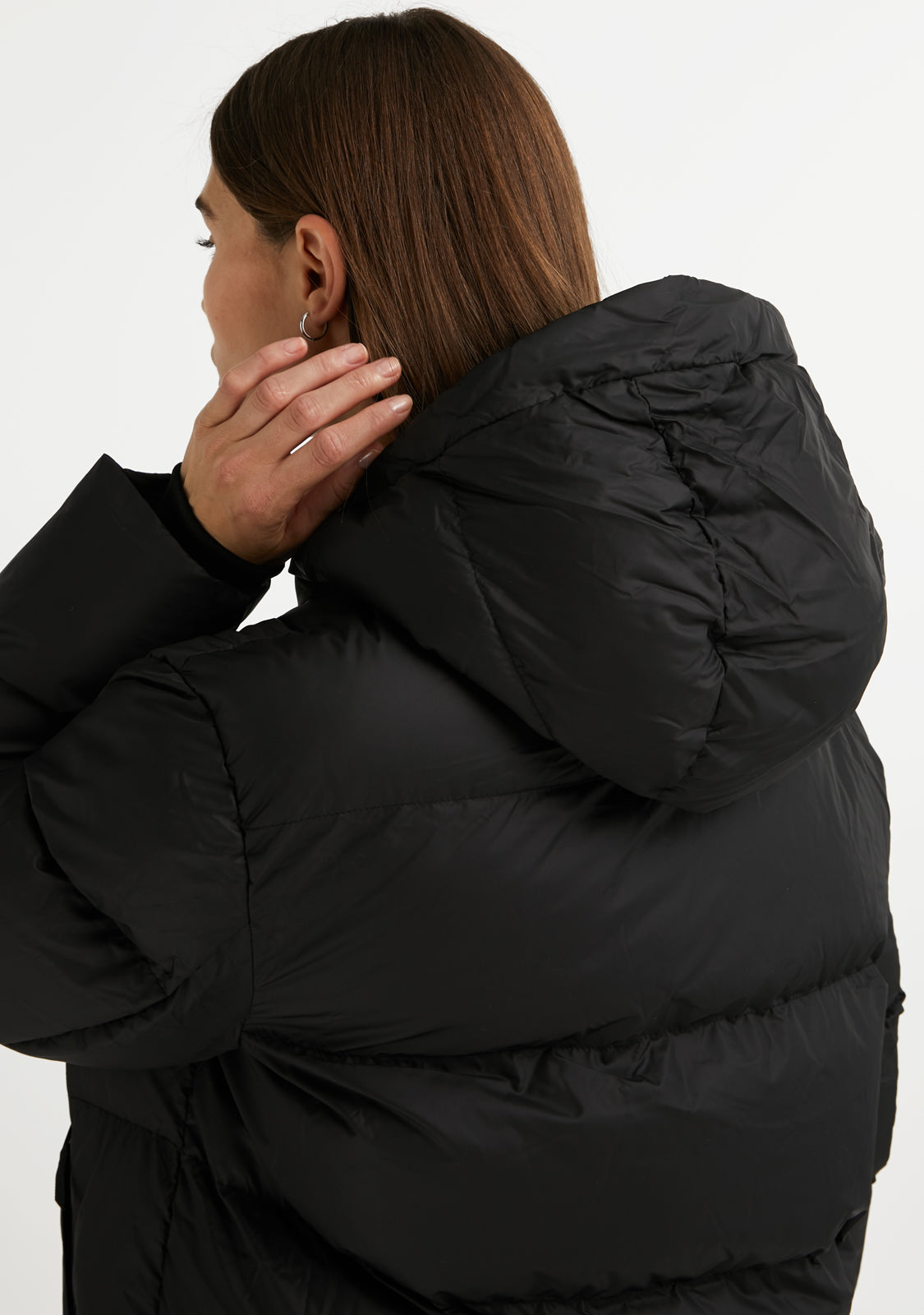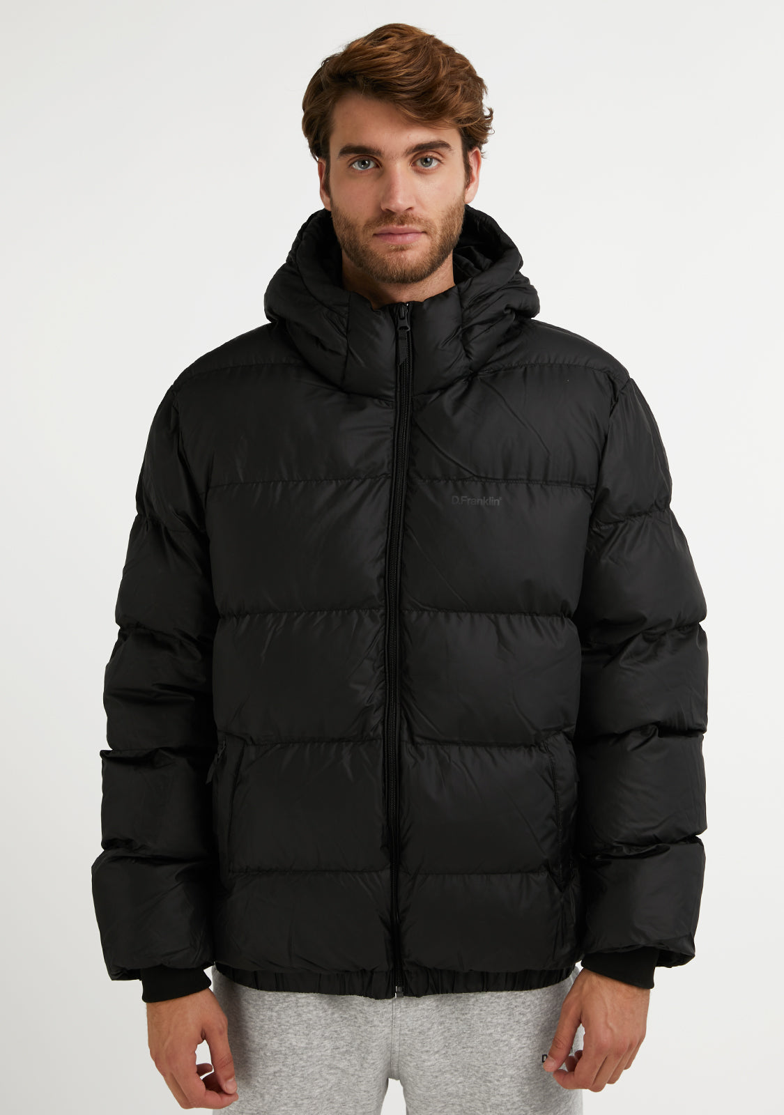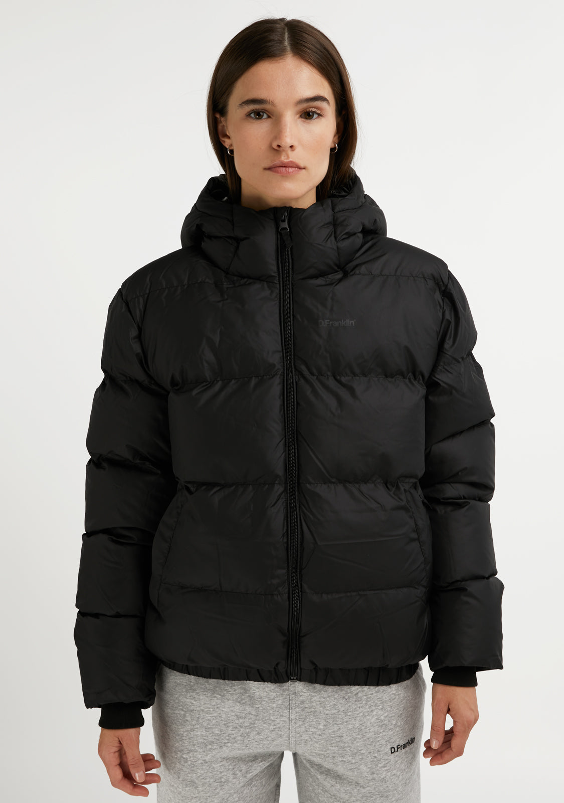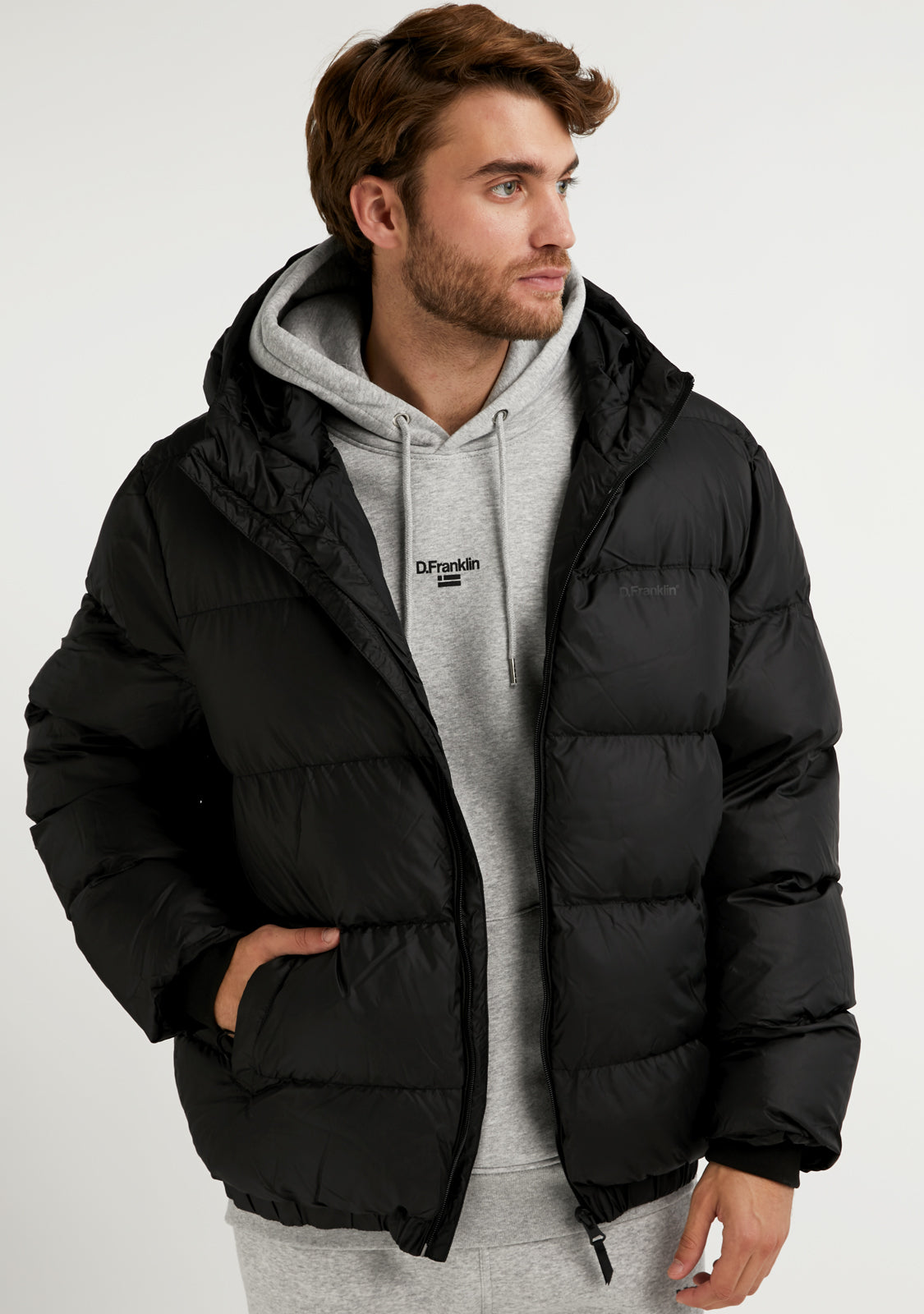 ¡No te pierdas nuestra nueva colección de chaquetas! El Logo Puffer Black combina estilo y comodidad, sin perder la esencia D.Franklin. Manga pegada y canalé en puños. Capucha forrada ajustable. Cierre de cremallera central delantera con protector de barbilla. Dos bolsillos laterales y bolsillo interior a la altura del pecho, todos con cremallera. Llena tus looks de estilazo y ¡que el frío no te pare!