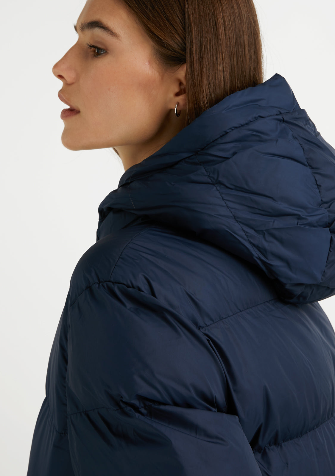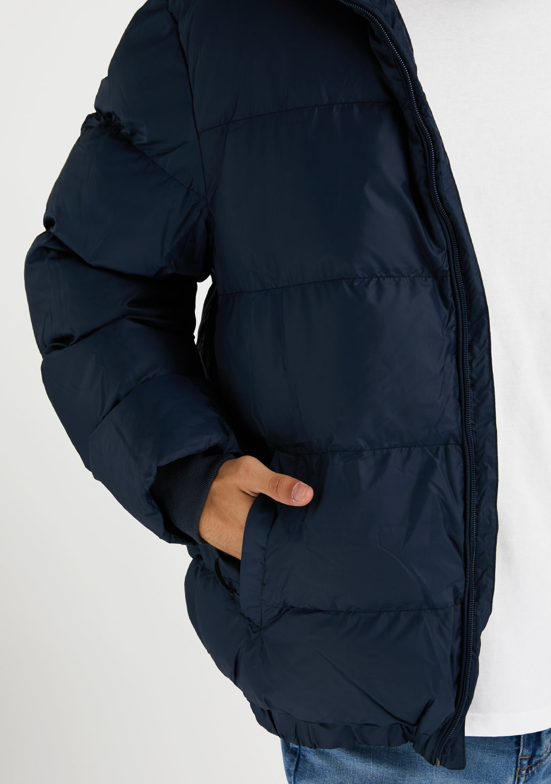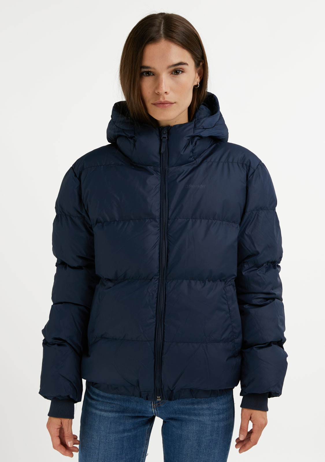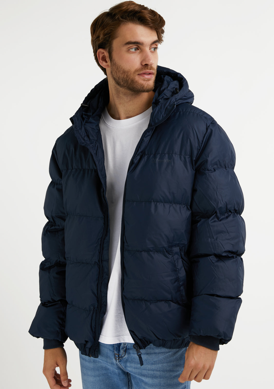 ¡No te pierdas nuestra nueva colección de chaquetas! El Logo Puffer Navy combina estilo y comodidad, sin perder la esencia D.Franklin. Manga pegada y canalé en puños. Capucha forrada ajustable. Cierre de cremallera central delantera con protector de barbilla. Dos bolsillos laterales y bolsillo interior a la altura del pecho, todos con cremallera. Llena tus looks de estilazo y ¡que el frío no te pare!
