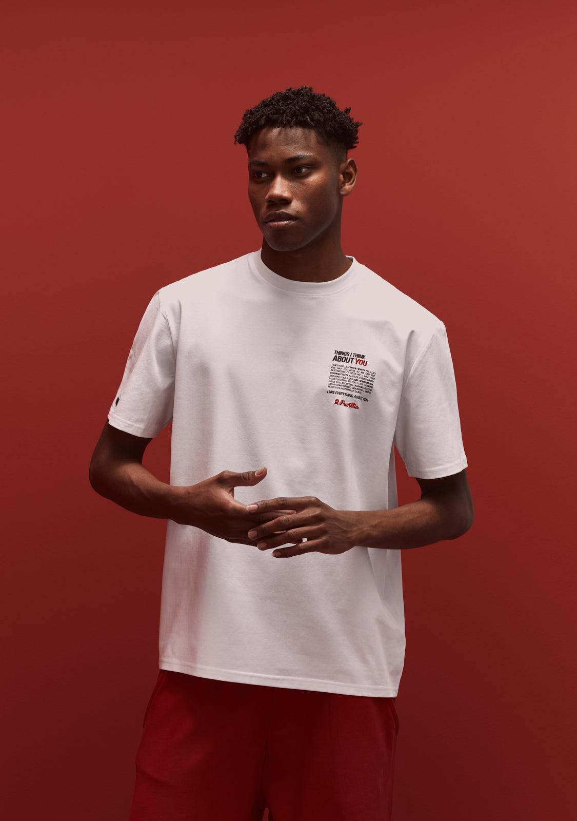 El diseño incorpora una frase especial serigrafiada en el pecho, un mensaje directo y emotivo que define el carácter de esta edición y convierte la camiseta en algo más que un básico.