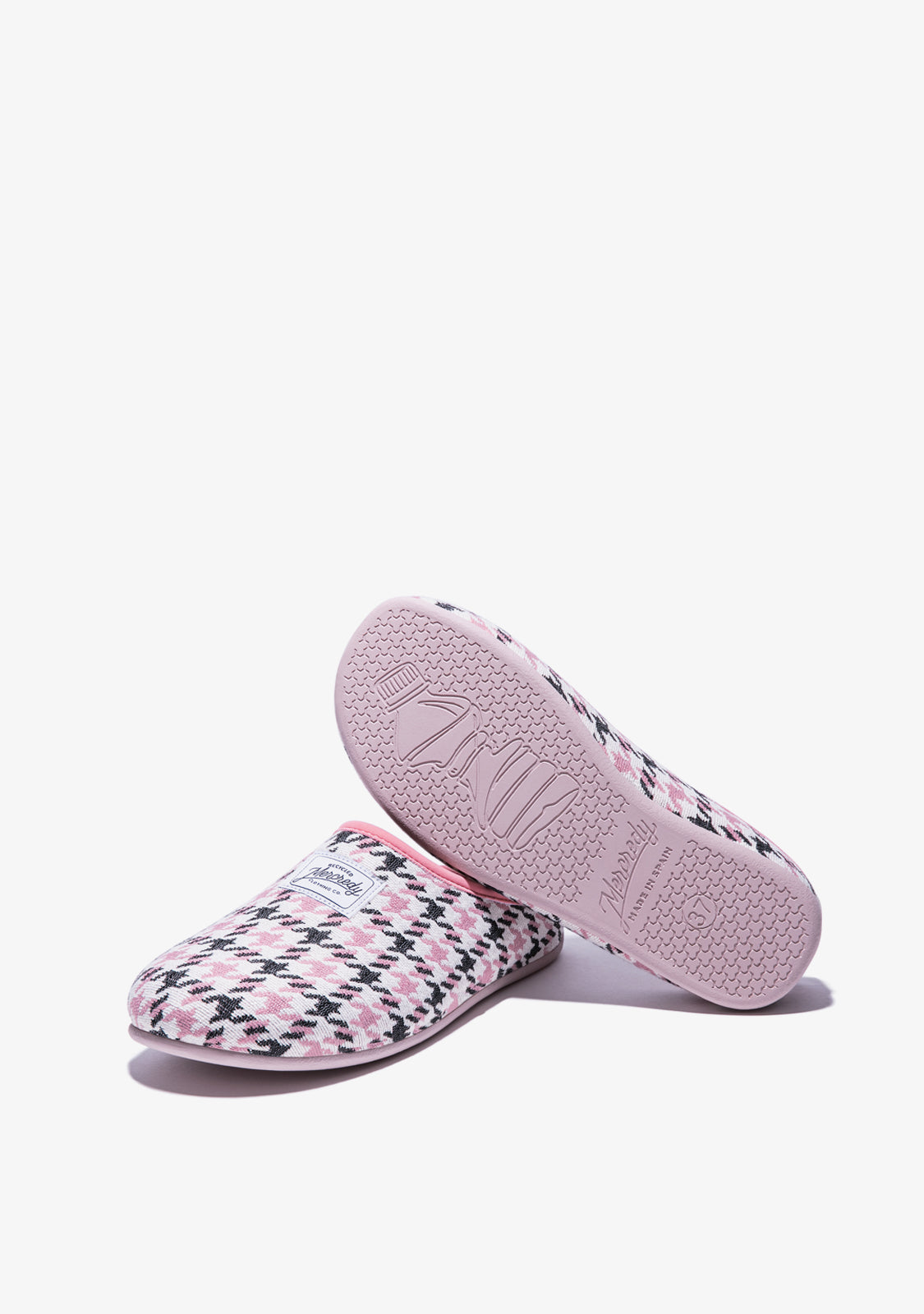 Llega la comodidad sostenible. La nueva colección Slipper de Mercredy llega para crear unas zapatillas de estar por casa diseñadas a partir de materiales reciclados. Están fabricadas en un tejido cómodo y ligero, con plantilla de fibra textil transpirable, así como suela de caucho antideslizante. Las Mercredy Slipper Houndstooth Black / Pink están diseñadas con estampado de pata de gallo.