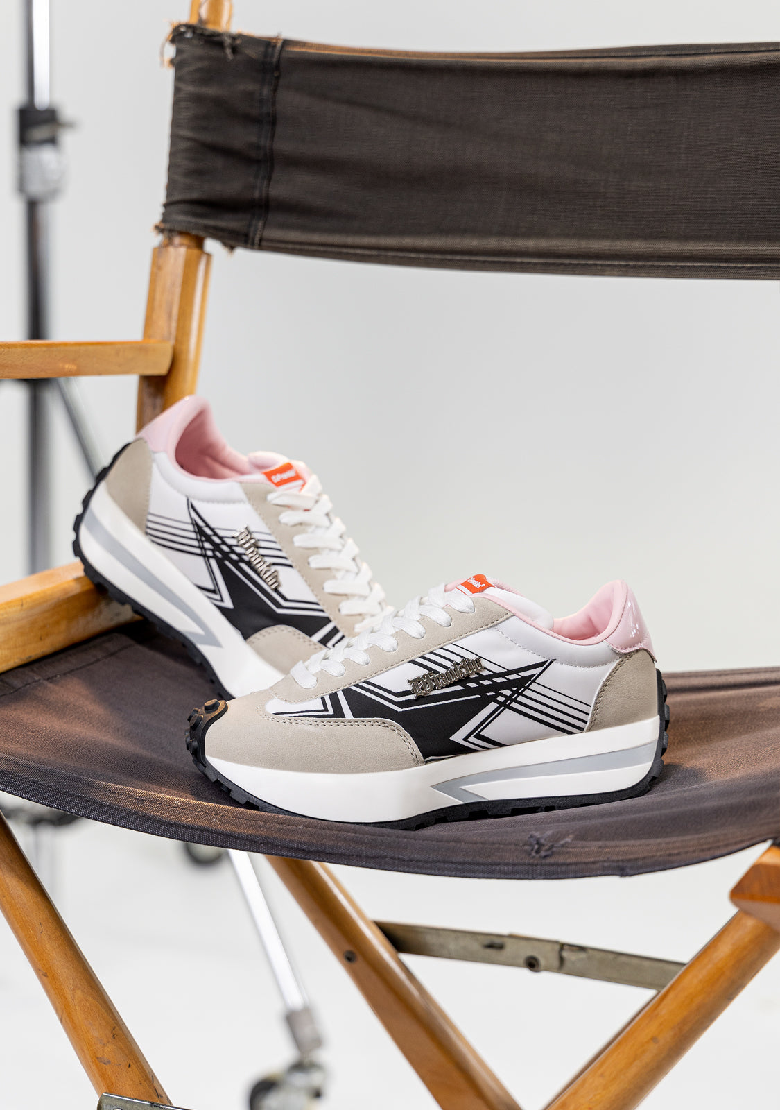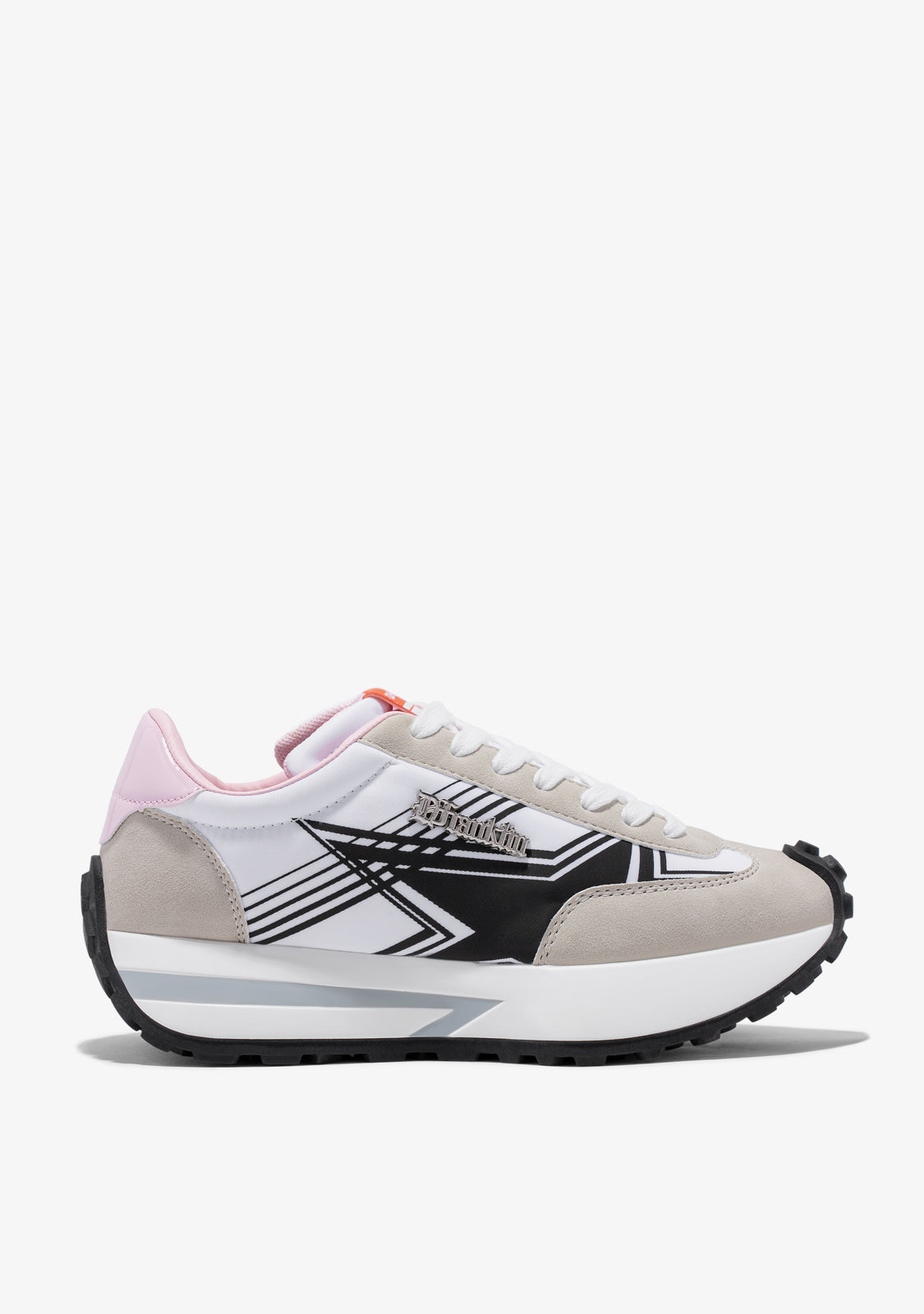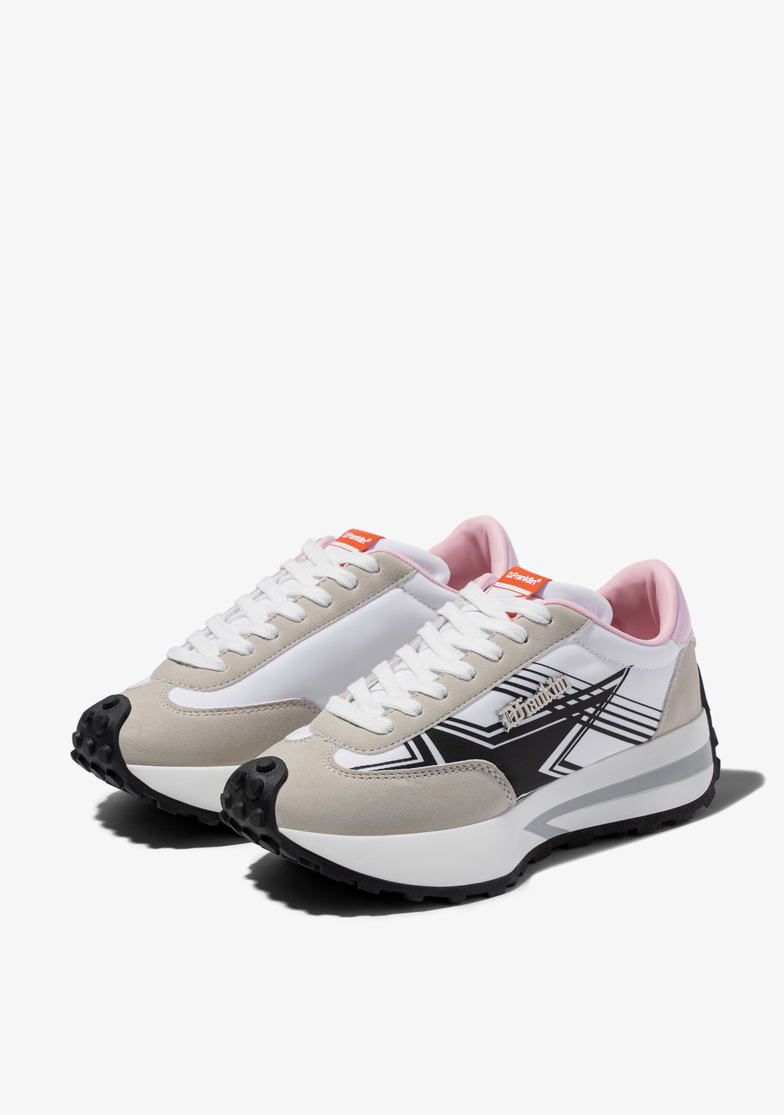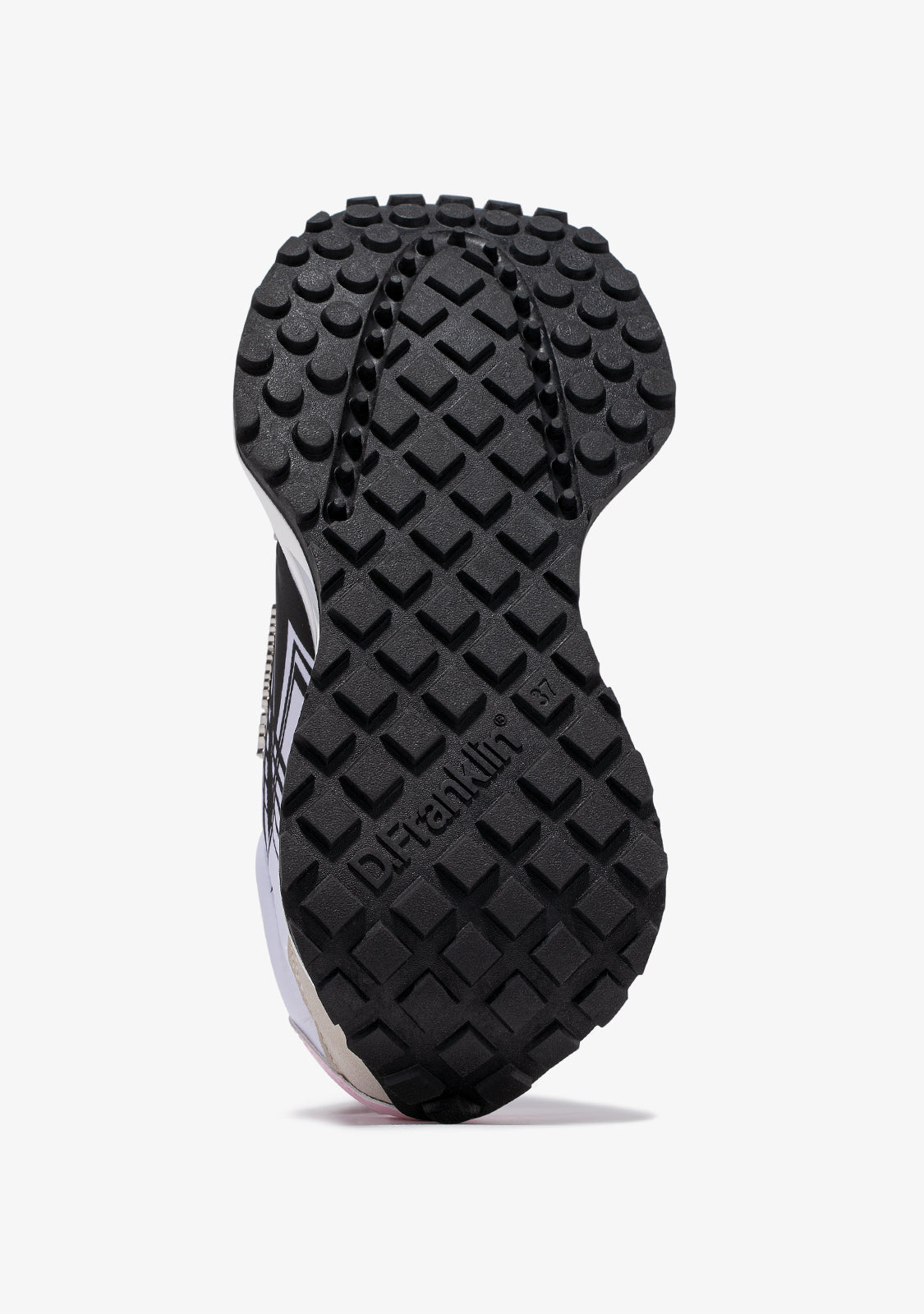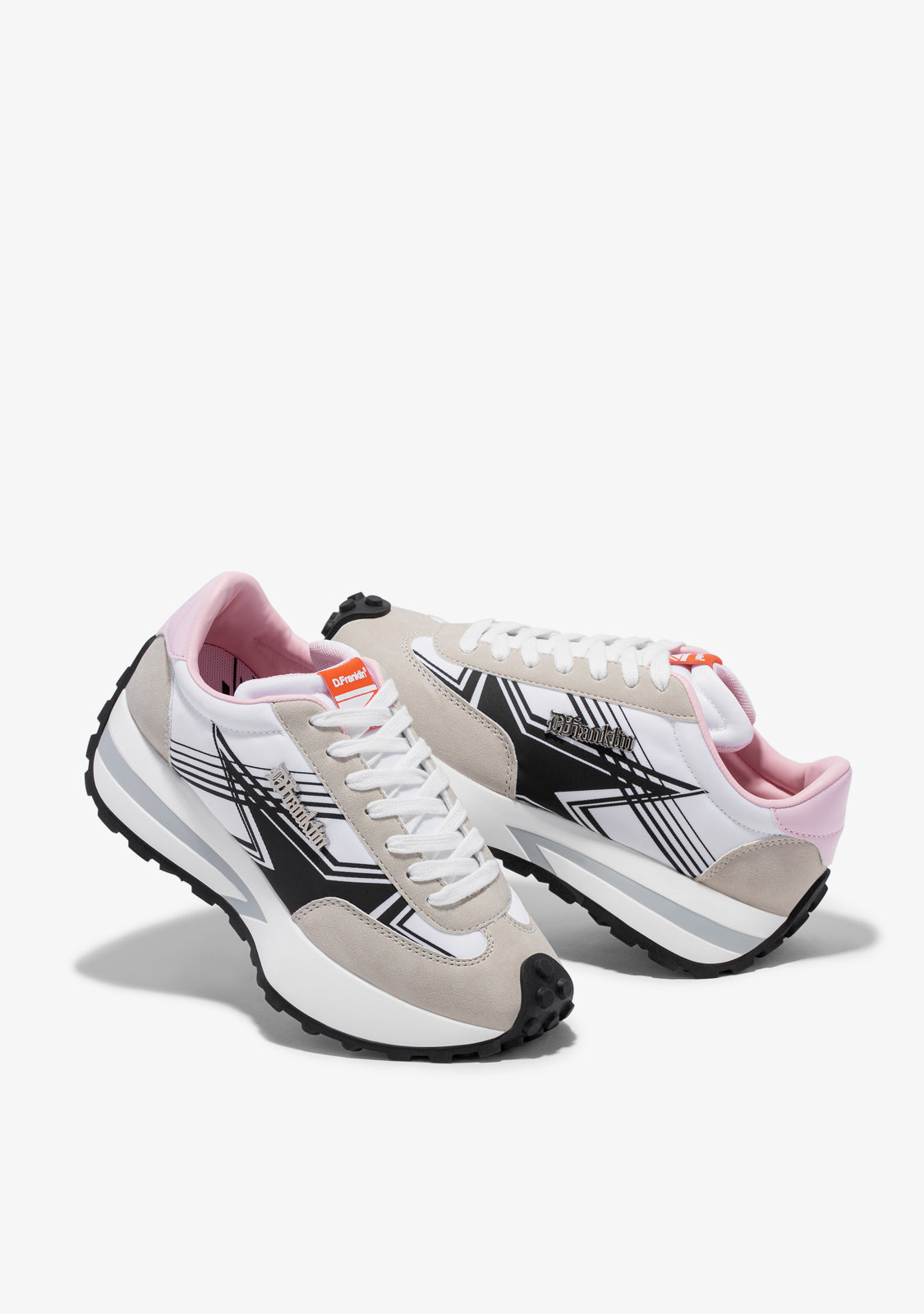 Sneaker inspirada en el ritmo propio de la ciudad. Diseño de tendencia construido a partir de materiales cruelty-free. Print lateral de estrella en negro. Detalle D.Franklin de metal. Plataforma blanca de 4 cm. Suela especial antideslizante TR en negro.