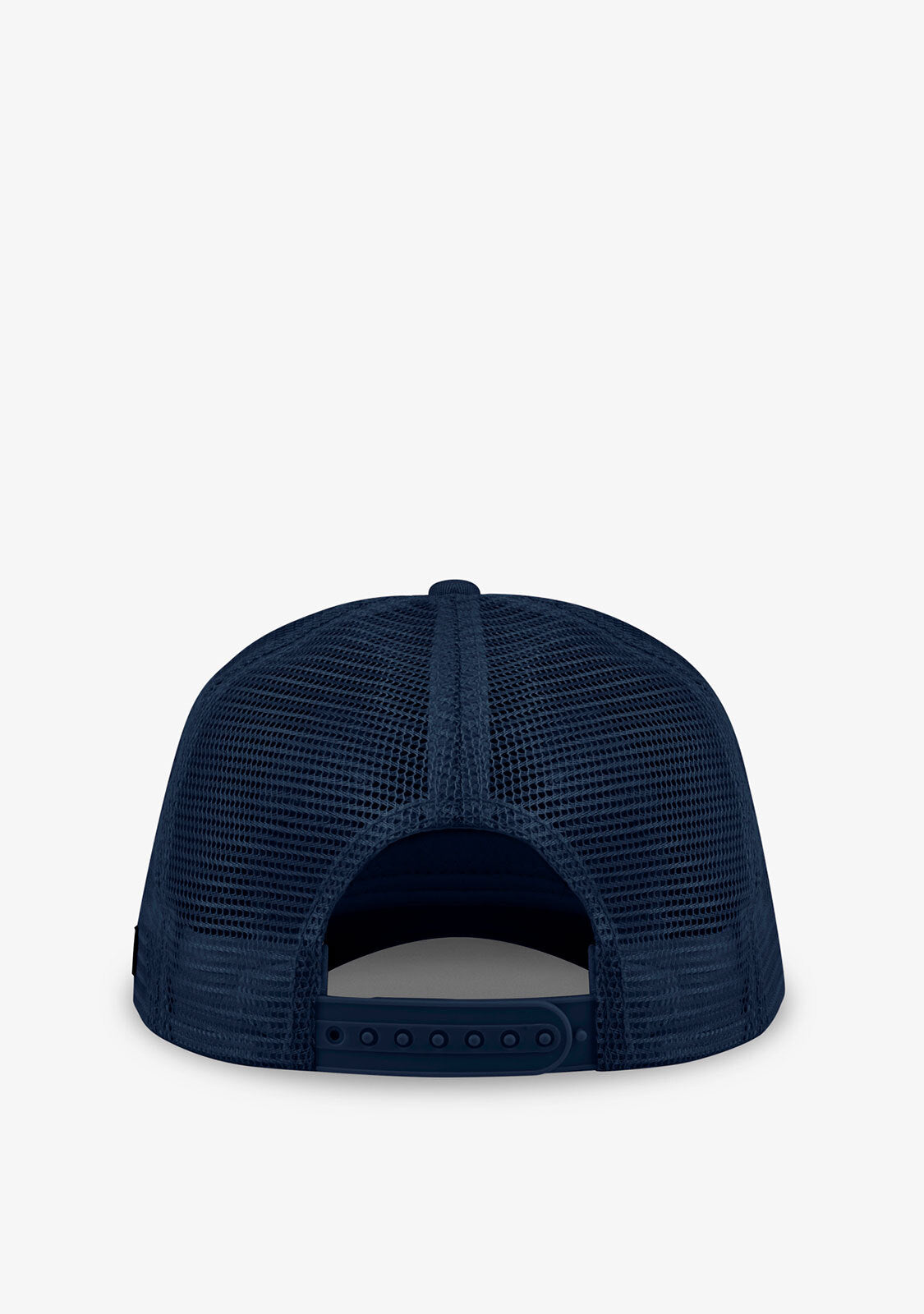 Mont Baker Cap, una gorra trucker de estilo baseball, con parche bordado en la parte frontal y rejilla transpirable en la parte posterior. Un estilo urbano de inspiración outdoor, clásica visera curva y cúpula en color azul navy. Una llamada a los clásicos, adaptados a las tendencias actuales.