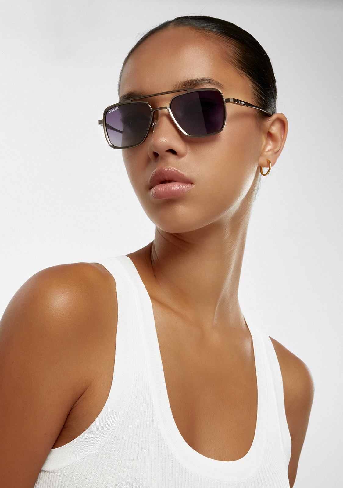 La reinterpretación de un estilo icónico. Actualizamos el espíritu del inconfundible modelo de aviador con un diseño de esencia rectangular. Su silueta exhibe una montura de líneas rectas y ángulos precisos que enmarcan la mirada de una forma audaz. Diseño unisex pensado para crear una estética singular e innovadora.
