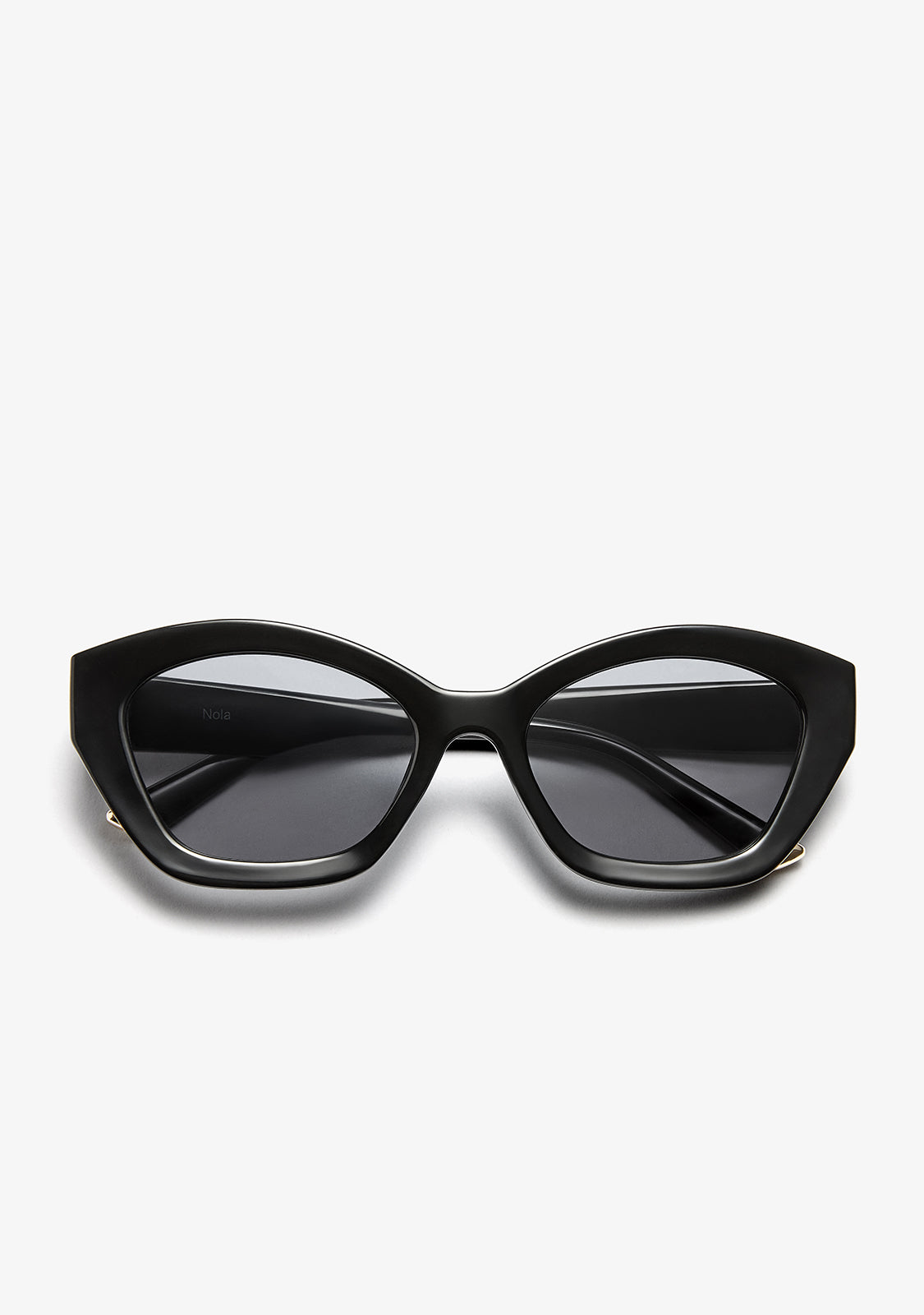 Gafas de sol con montura de ojo de gato, con un diseño elegante y atemporal que resalta las esquinas levantadas y una línea superior definida. Las nuevas Nola Black / Black ofrecen un look completamente negro con una silueta perfecta para el uso diario.