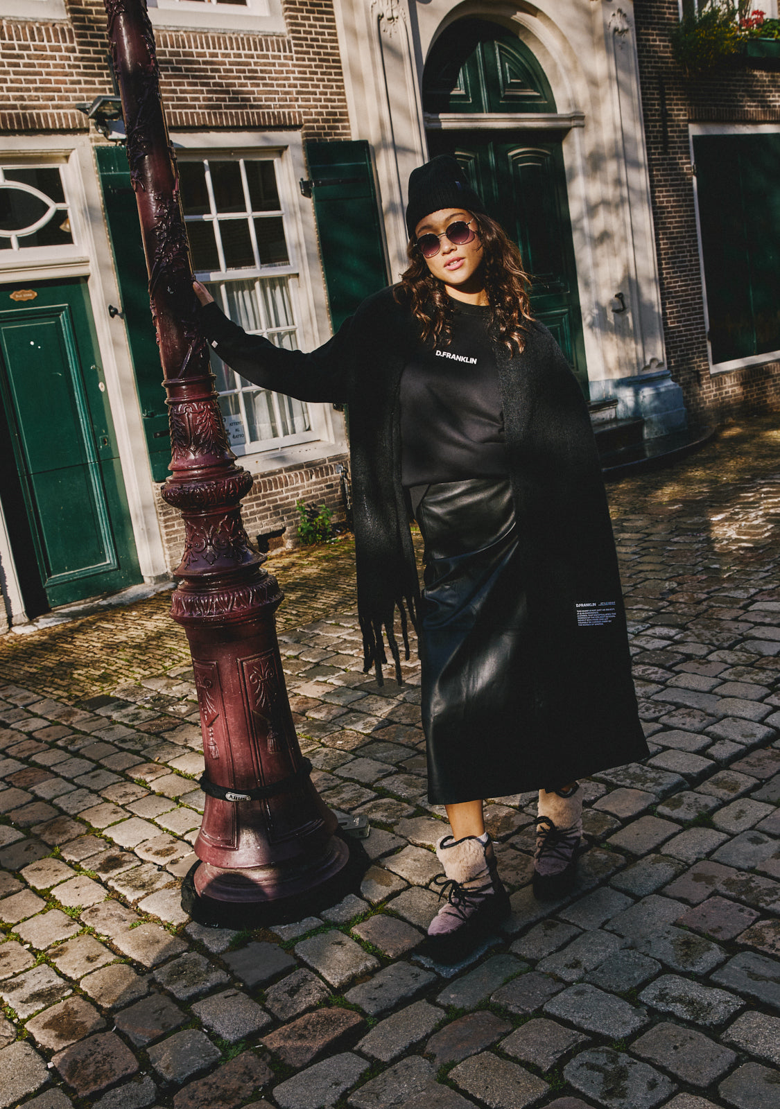 Este diseño nace directamente de la estética de las calles. Con tejido en punto suave y detalle de etiqueta D.Franklin en la parte lateral. Una pieza en tono negro diseñada para marcar tendencia.