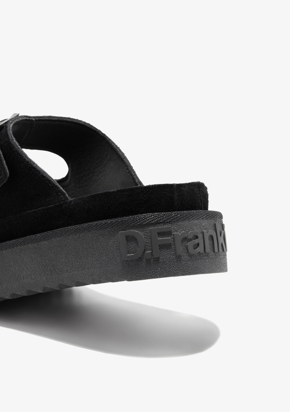 Este modelo D.Franklin cuenta con un acabado oscuro de doble tira de serraje. Su cierre de hebilla regulable presenta nuestro lettering. Además, están confeccionadas con una plantilla anatómica que se adapta a la forma del pie para una pisada de otro nivel.