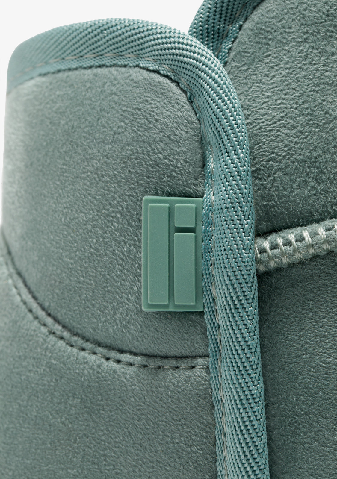 El corte asimétrico en tonos verdes suaves combina funcionalidad y estilo, mientras que el interior forrado con pelo sintético de alta calidad garantiza una sensación de abrigo y suavidad en cada paso.
