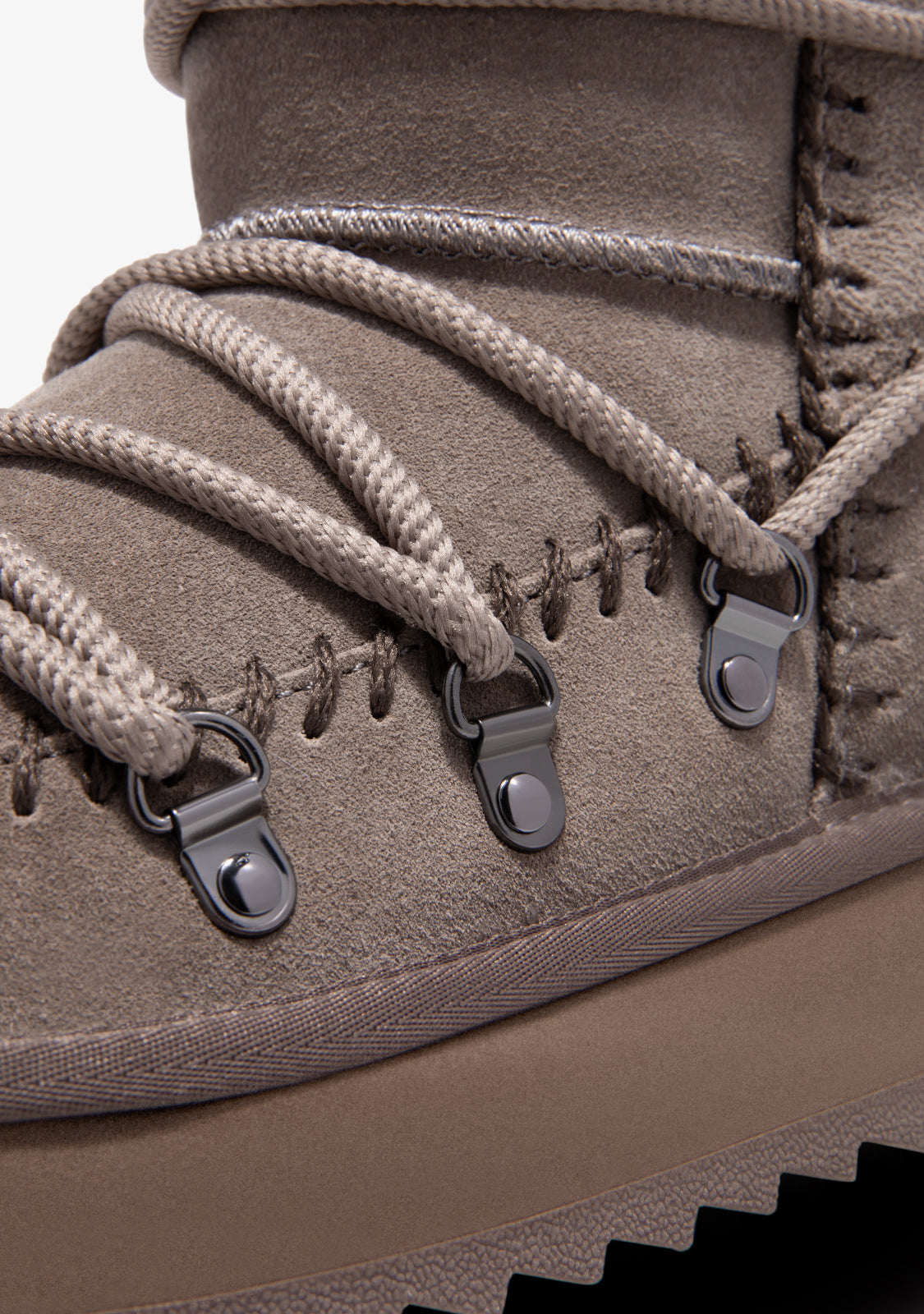 Diseño con caña asimétrica en tono gris y forro interior sintético para una calidez superior.