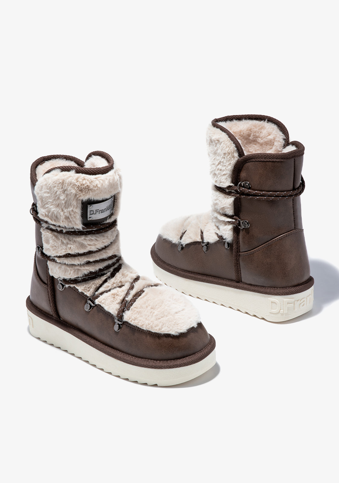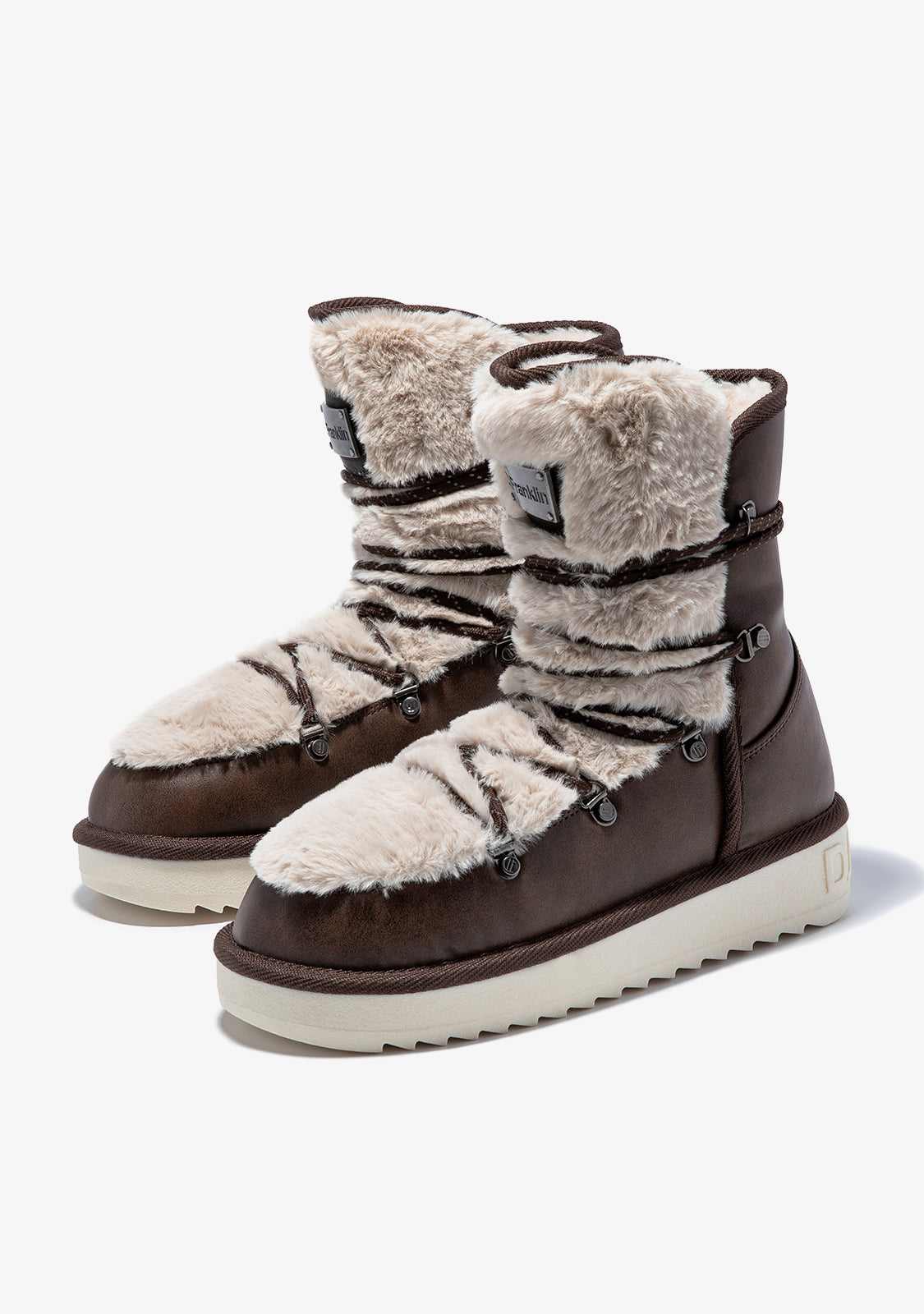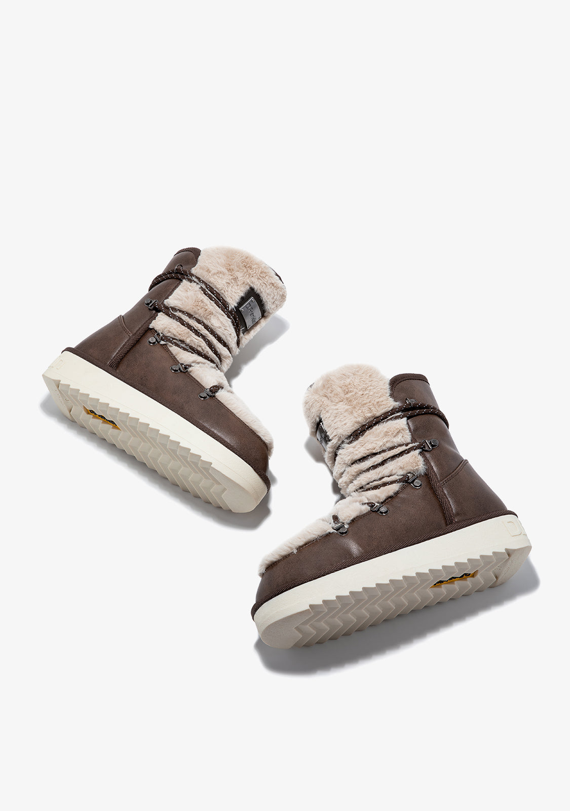 Estas botas marrones cuentan con tejido de microfibra de alta calidad que repele el agua. Su piso rediseñado aporta mayor ligereza para una pisada con gran confort. También presenta nuestro emblema personalizado en el talón. Sus cordoneras multiposición estilo montaña permiten una sujeción óptima y cuentan con detalles reflectantes. Además, su forro exterior de pelo sintético consigue darle el toque invernal definitivo.