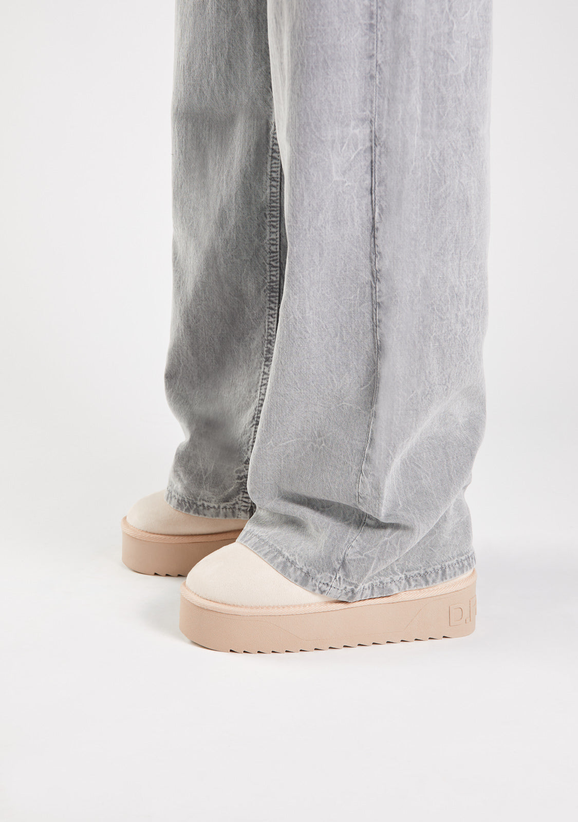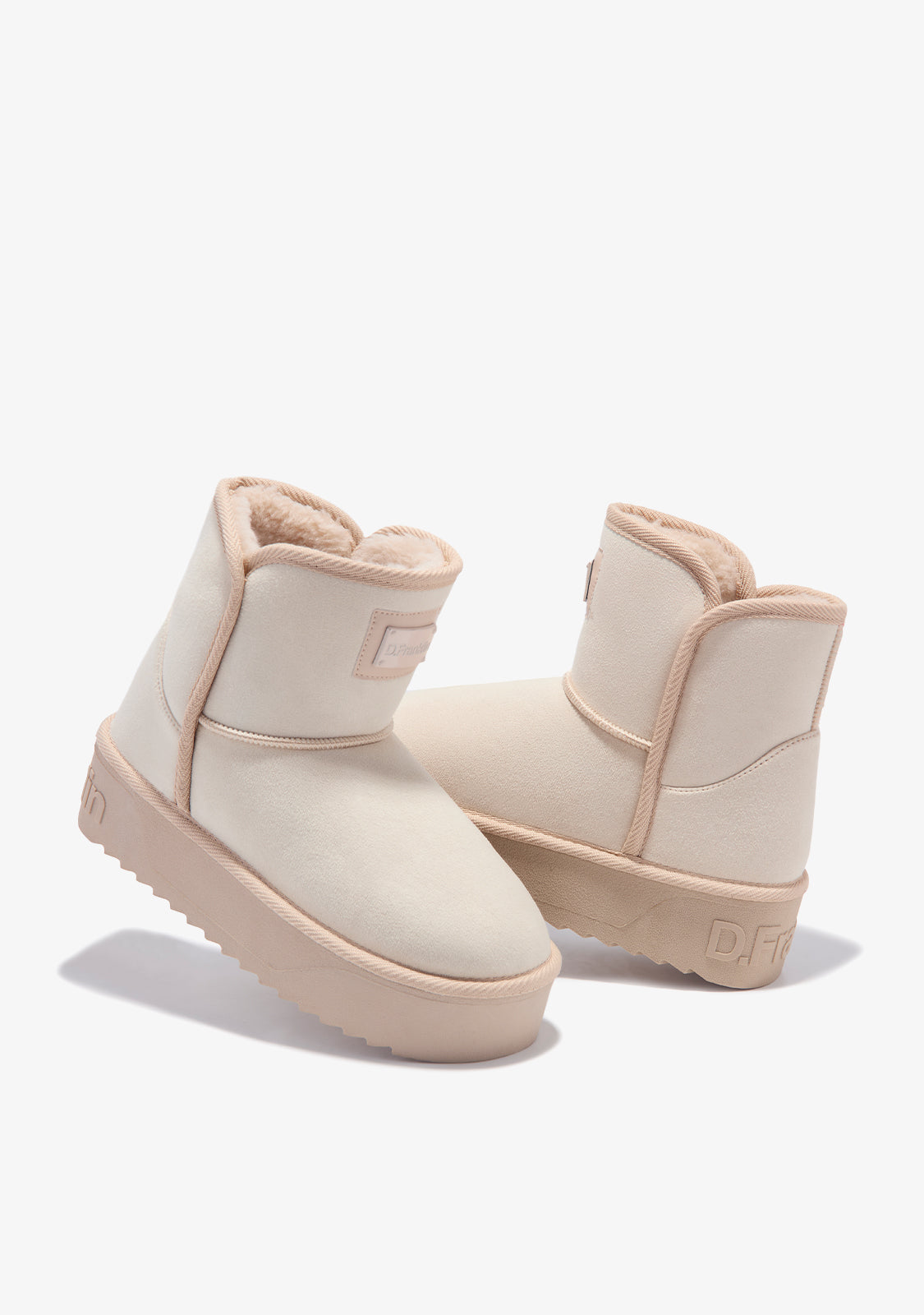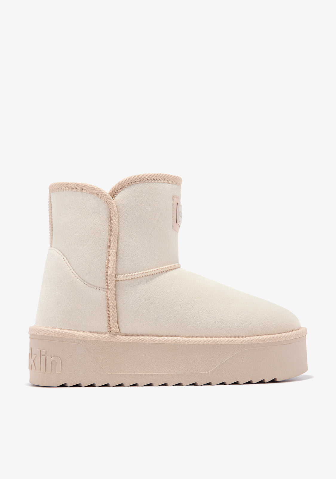 Diseño con corte asimétrico en tono blanco roto y forro interior sintético para una calidez superior.