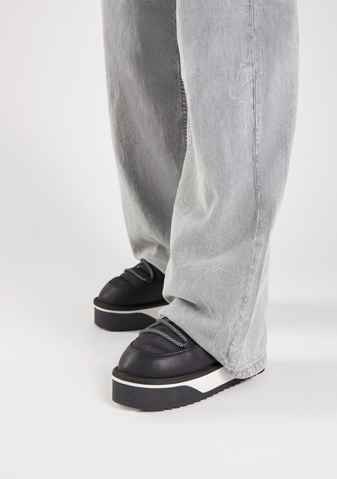 Definimos los días gélidos con una pieza cálida y distintiva. Este modelo está confeccionado con tejidos ligeros y flexibles de alta calidad. Su piso de doble altura aporta una pisada con gran confort. Además, cuenta con nuestro emblema personalizado tanto en el talón como en la parte lateral. Su cierre de cordones en negro permite un ajuste y sujeción perfecta y cuenta con detalles reflectantes.