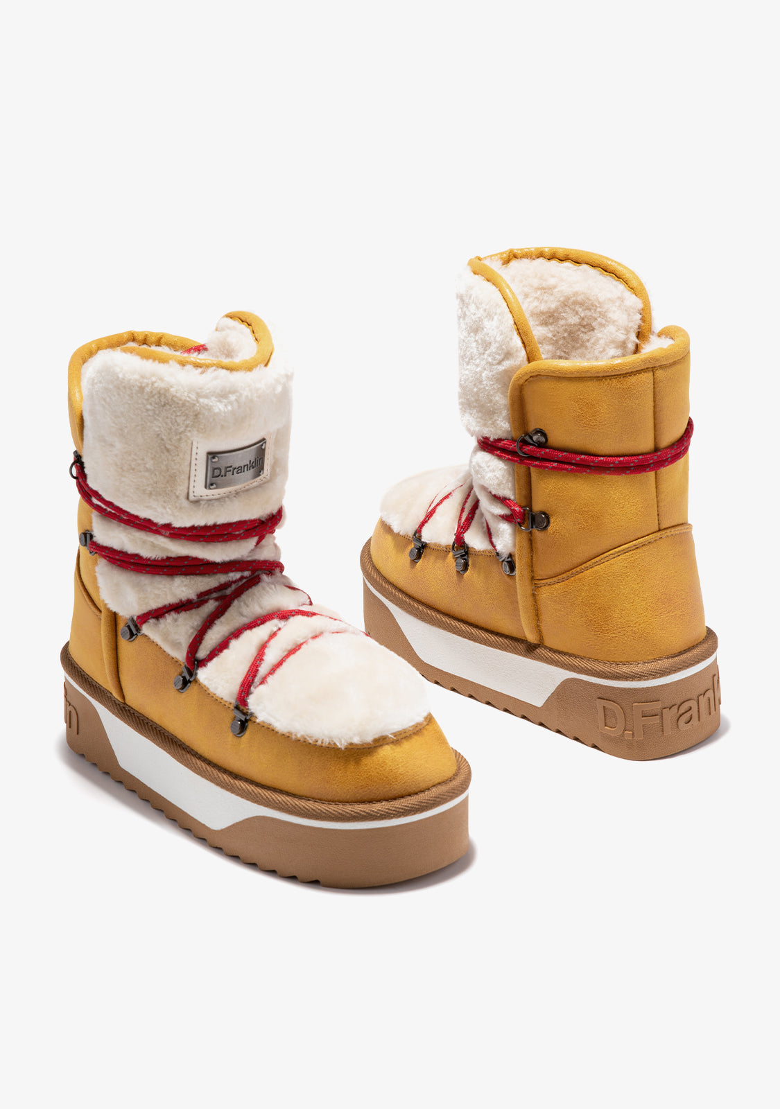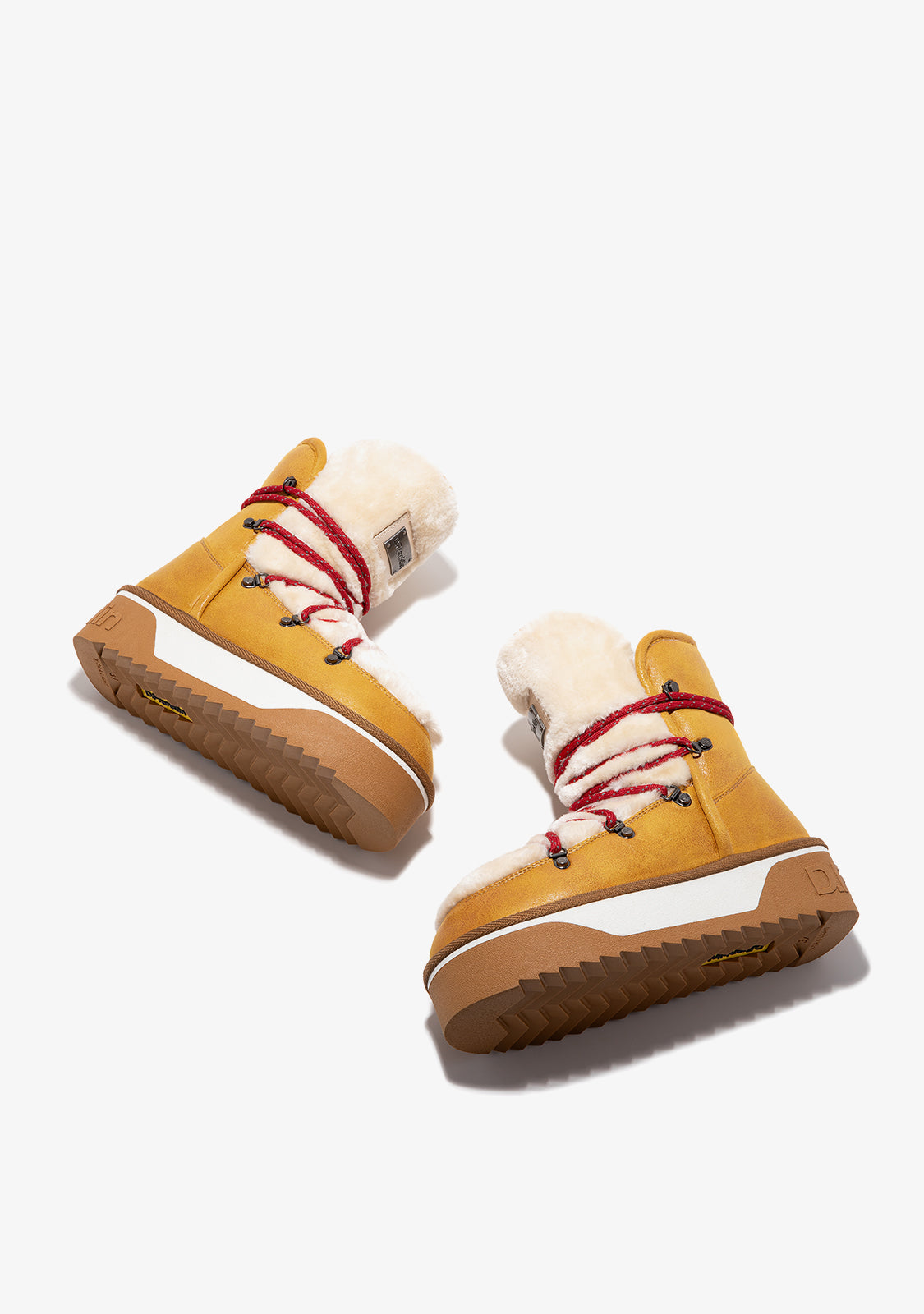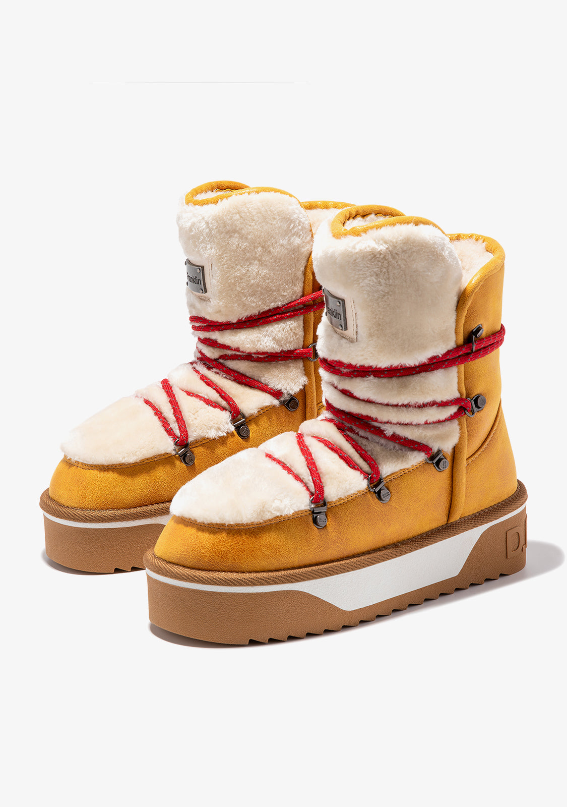 Estas botas mostaza cuentan con tejido de microfibra de alta calidad. Su piso rediseñado aporta mayor ligereza para una pisada con gran confort. También presenta nuestro emblema personalizado en el talón. Sus cordoneras multiposición estilo montaña permiten una sujeción óptima y cuentan con detalles reflectantes. Además, su forro exterior de pelo sintético consigue darle el toque invernal definitivo.