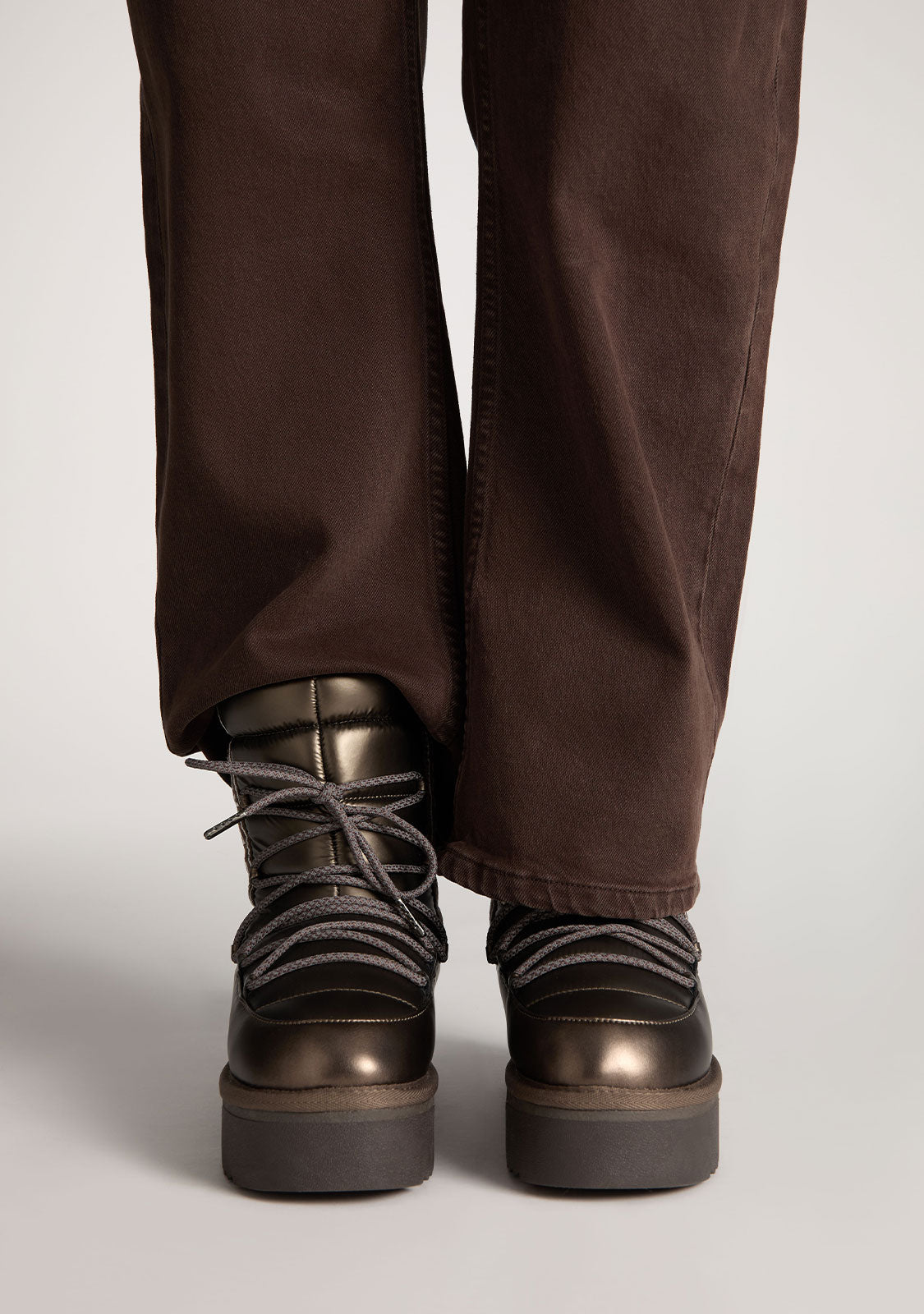 Diseño de caña recta en tonos bronce, estética brillante y forro interior sintético para una mayor calidez.