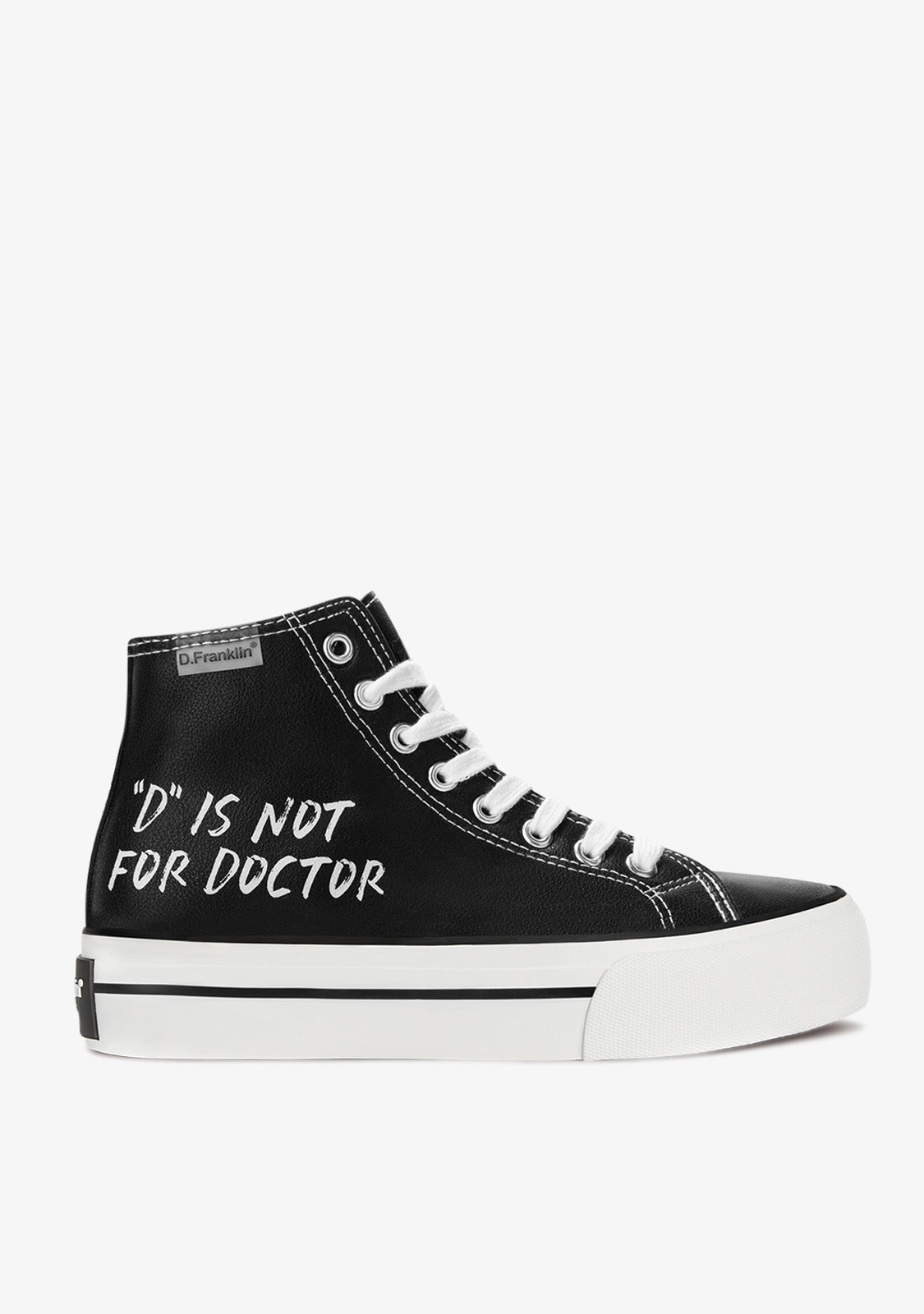 La edición limitada One Way está inspirada en las colecciones más casual, combinada con la personalidad y el estilo más marcado de D.Franklin®. Las One Way D Is Not Black son las Hi-top sneakers perfectas para todo tipo de nuevos caminos. Un modelo de street style que combina las tendencias actuales con los acabados y detalles más originales. Diseño inspirado en nuestro claim "D. is not for doctor".