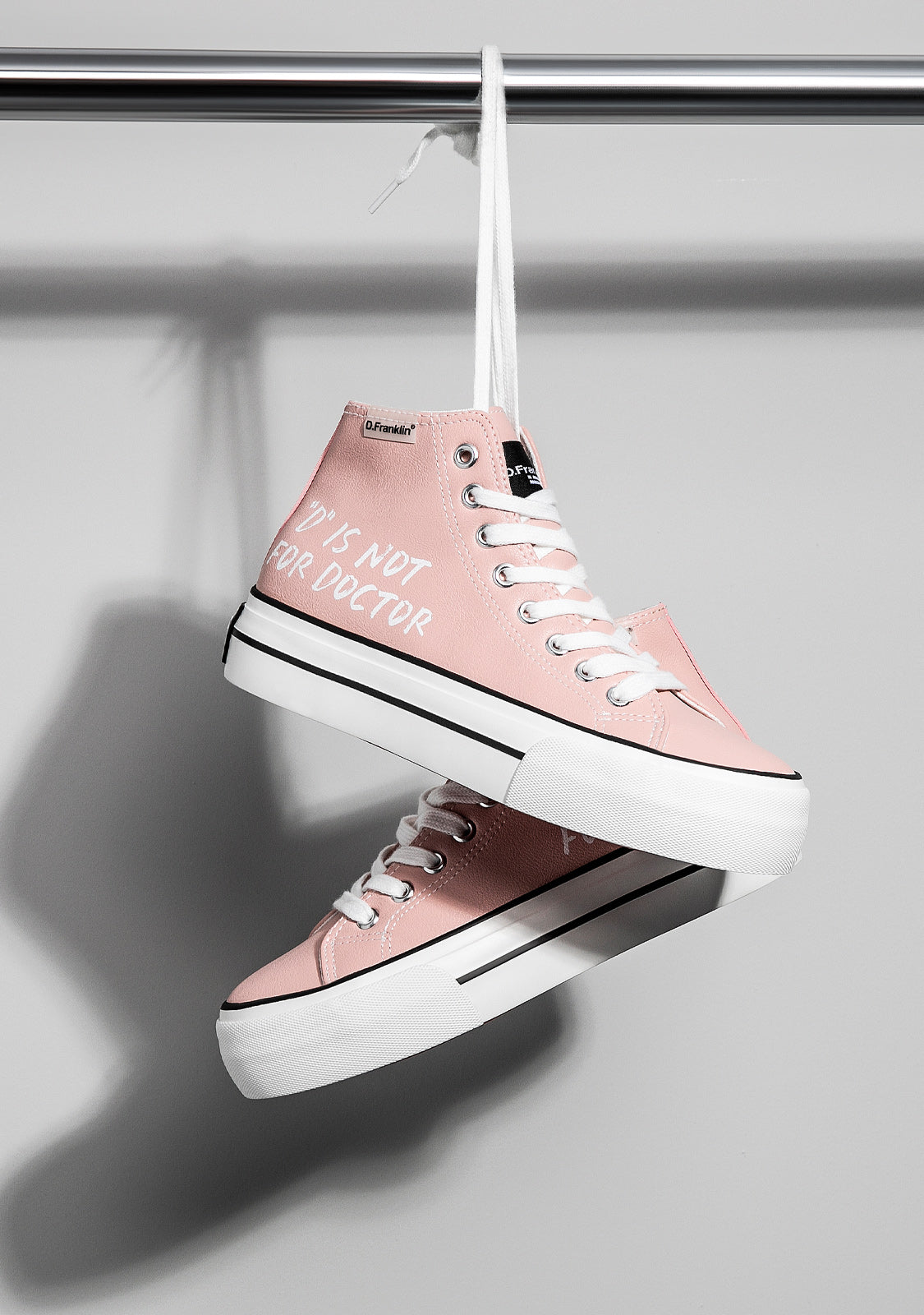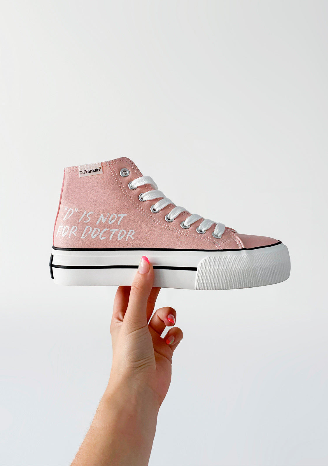 La edición limitada One Way está inspirada en las colecciones más casual, combinada con la personalidad y el estilo más marcado de D.Franklin®. Las One Way D Is Not Pink son las Hi-top sneakers perfectas para todo tipo de nuevos caminos. Un modelo de street style que combina las tendencias actuales con los acabados y detalles más originales. Diseño inspirado en nuestro claim "D. is not for doctor".