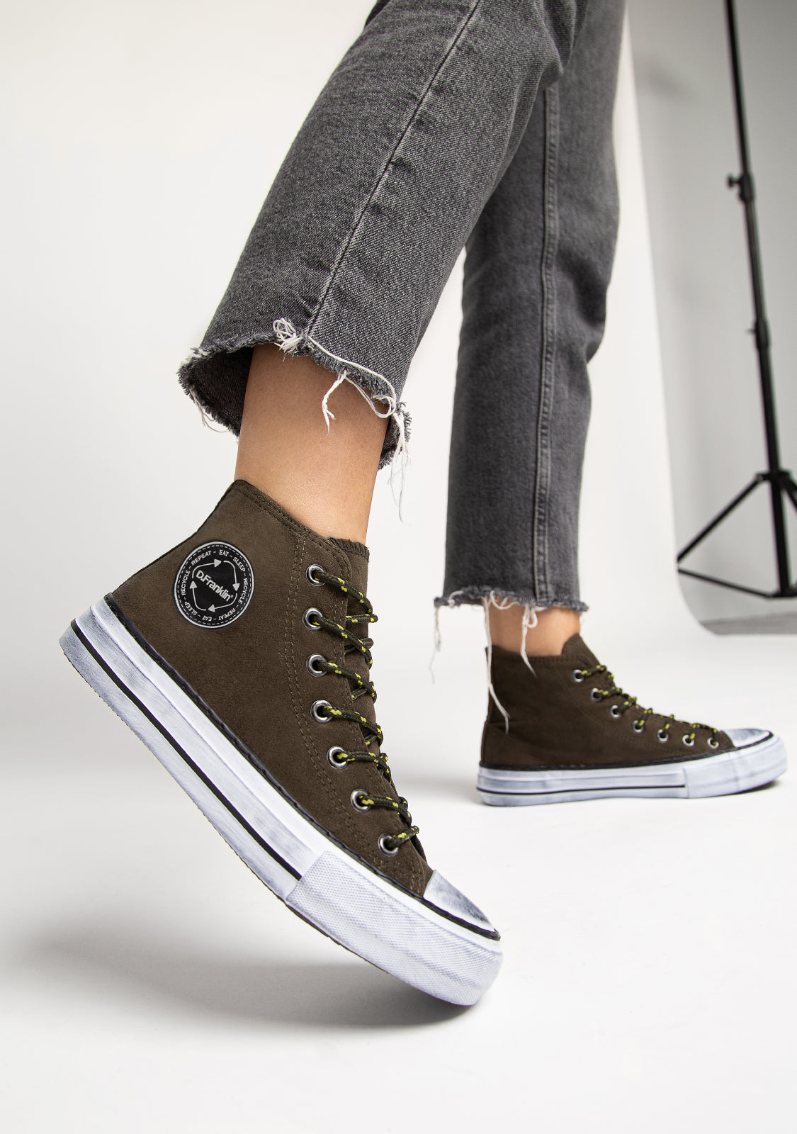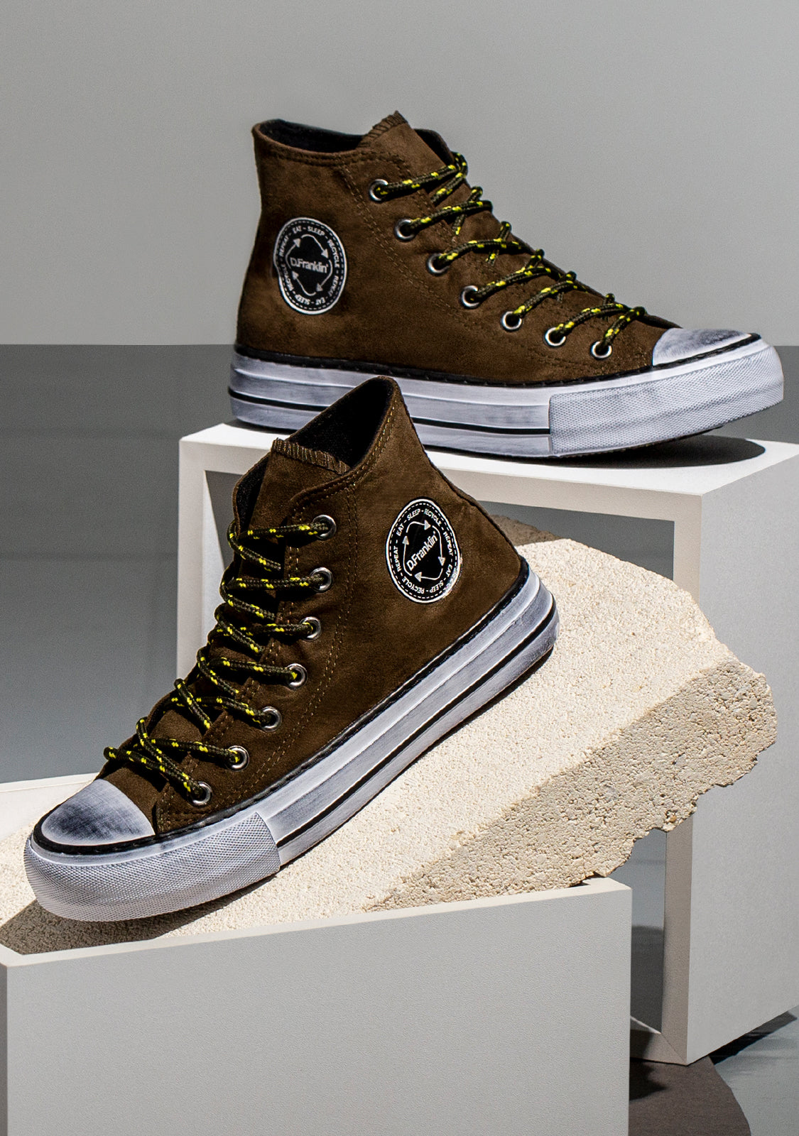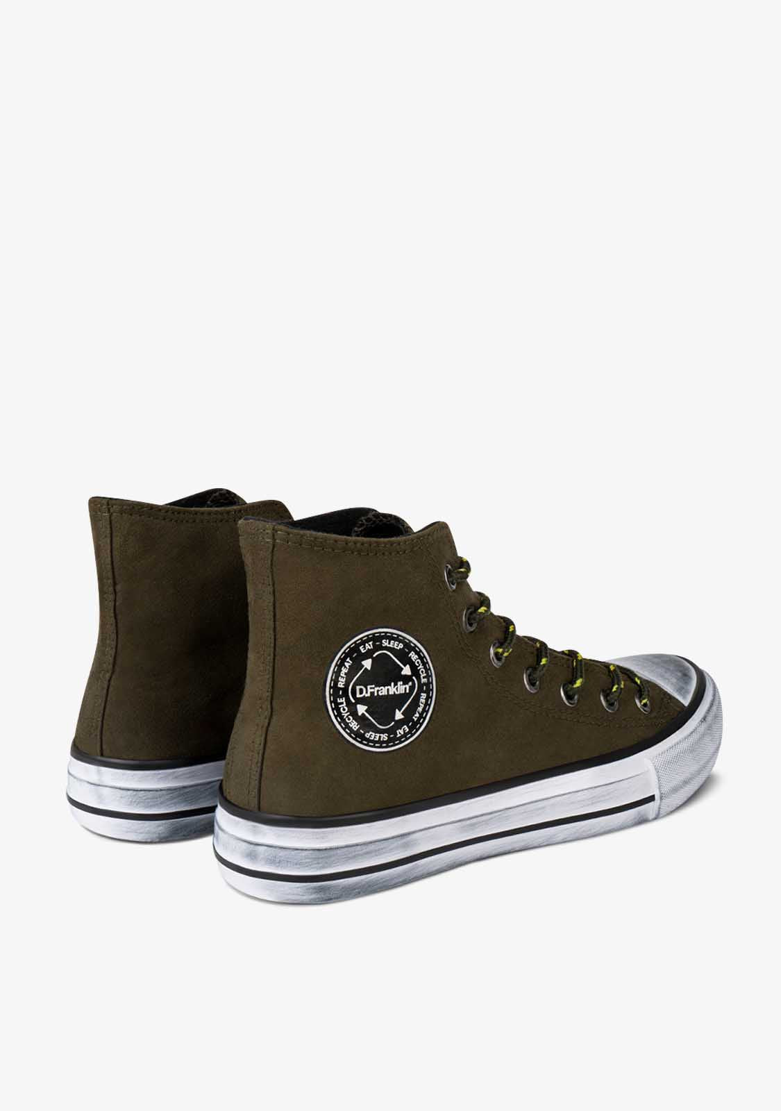 La edición limitada One Way está inspirada en las colecciones más casual, combinada con la personalidad y el estilo más marcado de D.Franklin®. Las One Way Recycle Khaki son las Hi-top sneakers perfectas para todo tipo de nuevos caminos. Un modelo de street style que combina las tendencias actuales con el acabado desgastado de sus materiales.