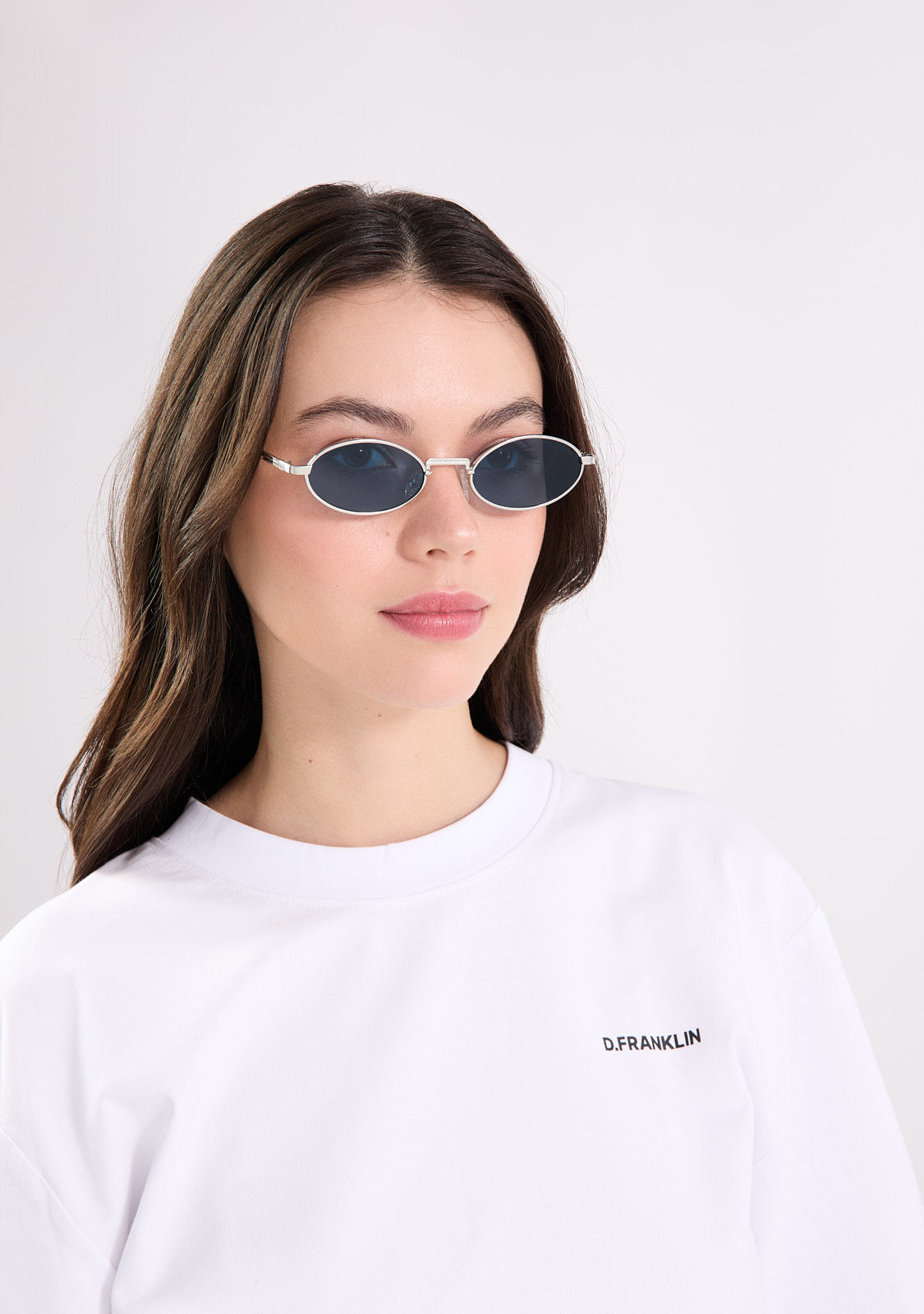 Gafas de sol translúcidas con diseño ovalado. El legado de las piezas más icónicas de los 70 se fusiona con una selección de detalles actuales.