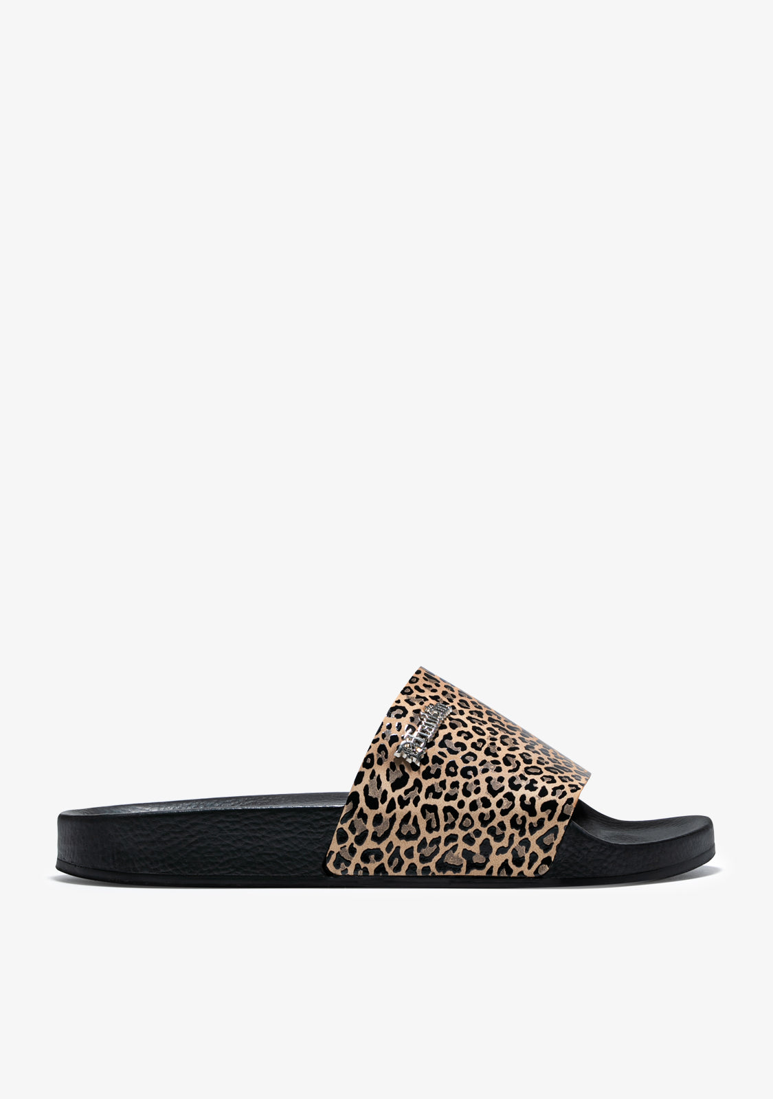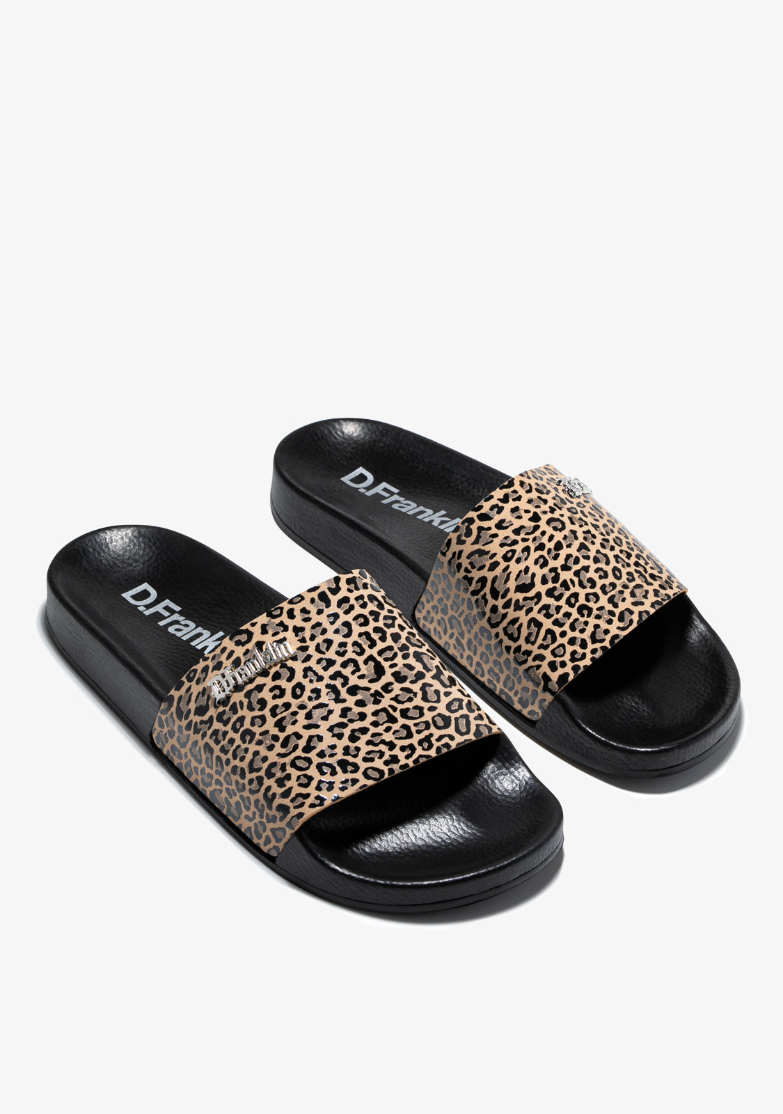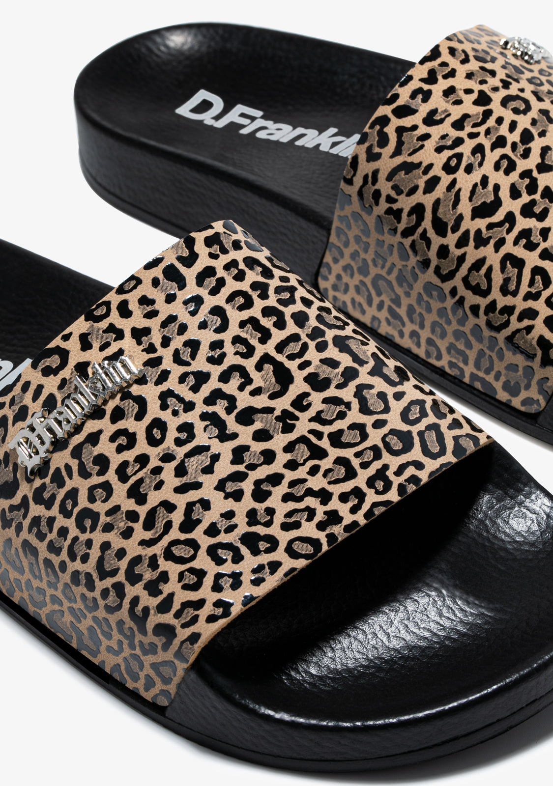 Las sandalias D.Franklin Pala Slide Patent cuentan con una tira sintética ancha de estampado leopardo que garantiza la sujeción. Además, presentan nuestro emblema D.Franklin en la parte superior de la misma. El diseño de la planta presenta un moldeado que se adapta a la perfección a la forma del pie.