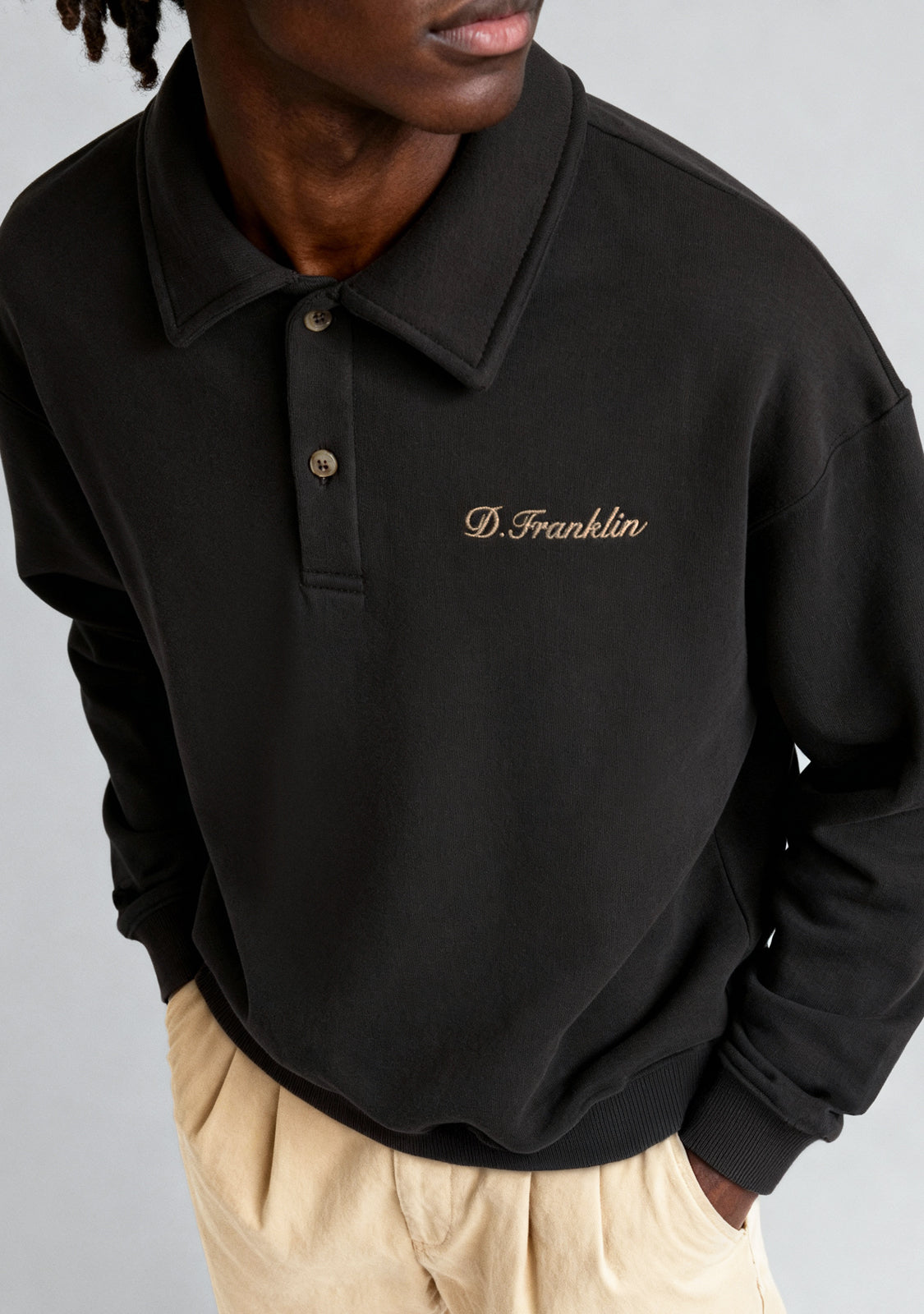 Polo Sweatshirt Anthracite es una sudadera unisex con diseño de polo. Una prenda fácil de llevar que aporta calidez a tu look diario.