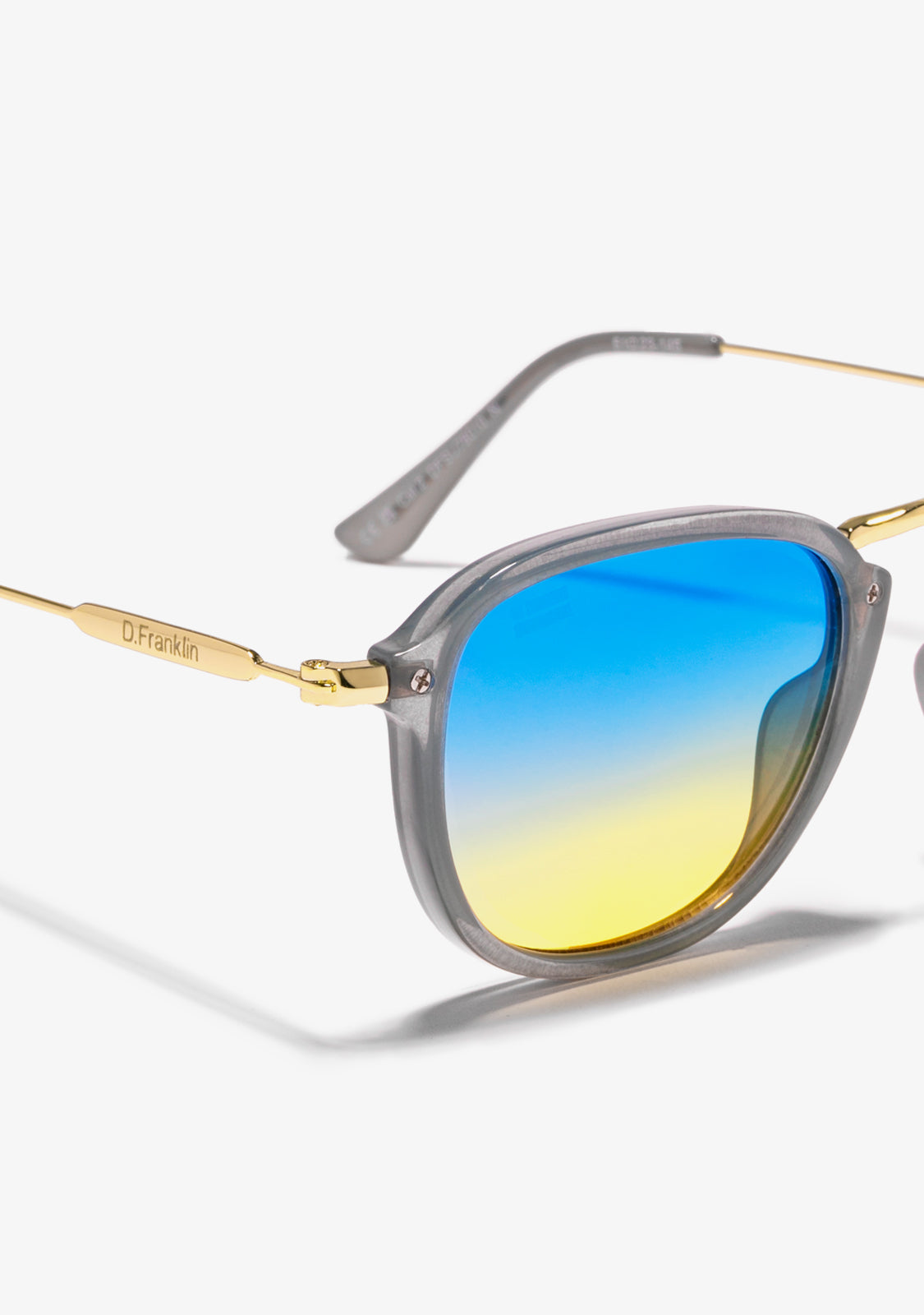 El espíritu de los sesenta. Viajamos en el tiempo y modernizamos uno de los modelos más emblemáticos de D.Franklin. Estas gafas de sol con inspiración retro fusionan una montura de estilo clásico con unos acabados tendencia impolutos. Diseño unisex con esencia vintage, creado para una estética inconfundible.