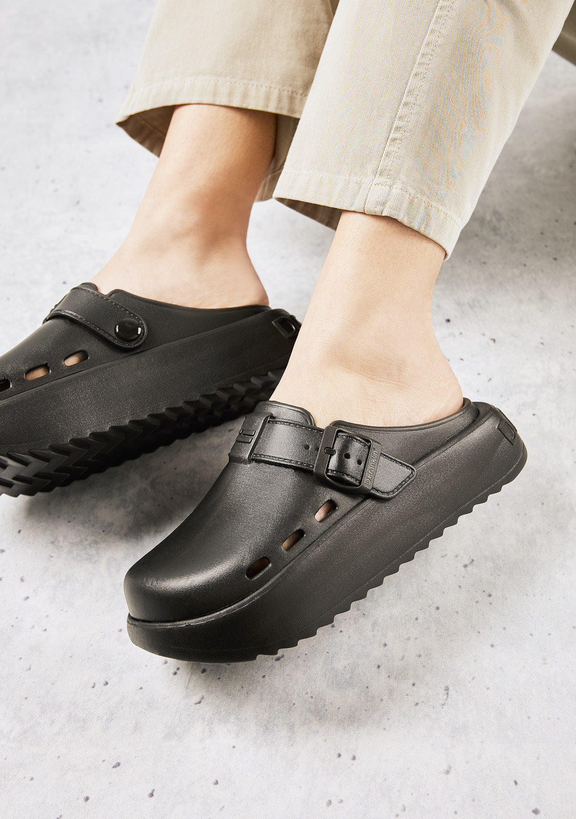 Suela de doble altura diseñada para una pisada confort a la vez que resistente y antideslizante.