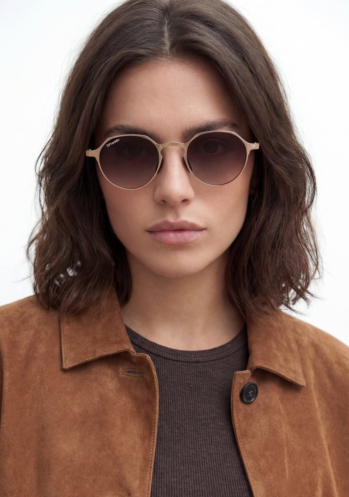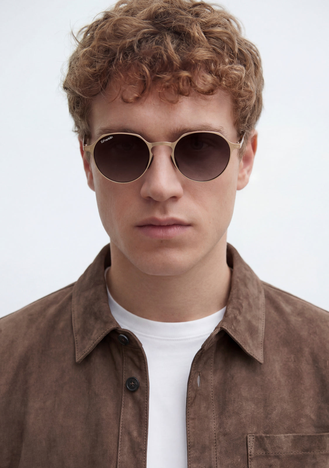 Ultra Light S Round Metal Gold / Gradient Brown combina un diseño clásico con un aire retro, reinterpretado en una silueta redonda, minimalista y elegante. Su montura en metal dorado contrasta con unas varillas con tonos carey para un acabado moderno y original.